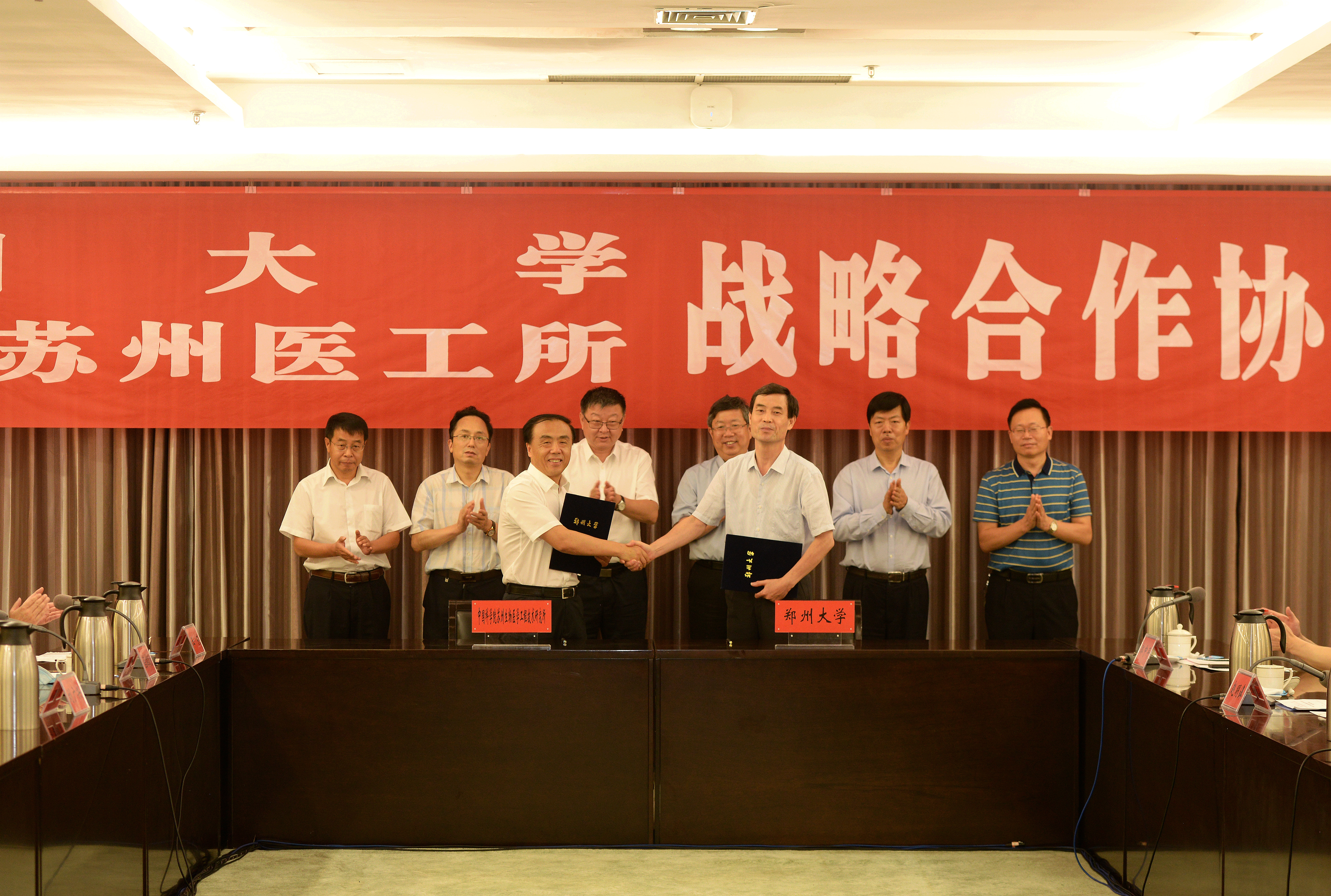 7月14日上午,bat365在线中国官网登录入口与中国科学院生物医学工程技术研究所战略合作协议签约仪式在主校区举行。河南省政协副主席、bat365在线中国官网登录入口校长刘炯天,苏州医工所所长唐玉国、党委书记杨洪波,郑州市副市长史占勇,校党委常委、副校长关绍康,副校长赵明皞以及苏州医工所、郑州市和bat365在线中国官网登录入口有关单位负责同志参加仪式。郑州市高新区党工委书记王新亭主持仪式。