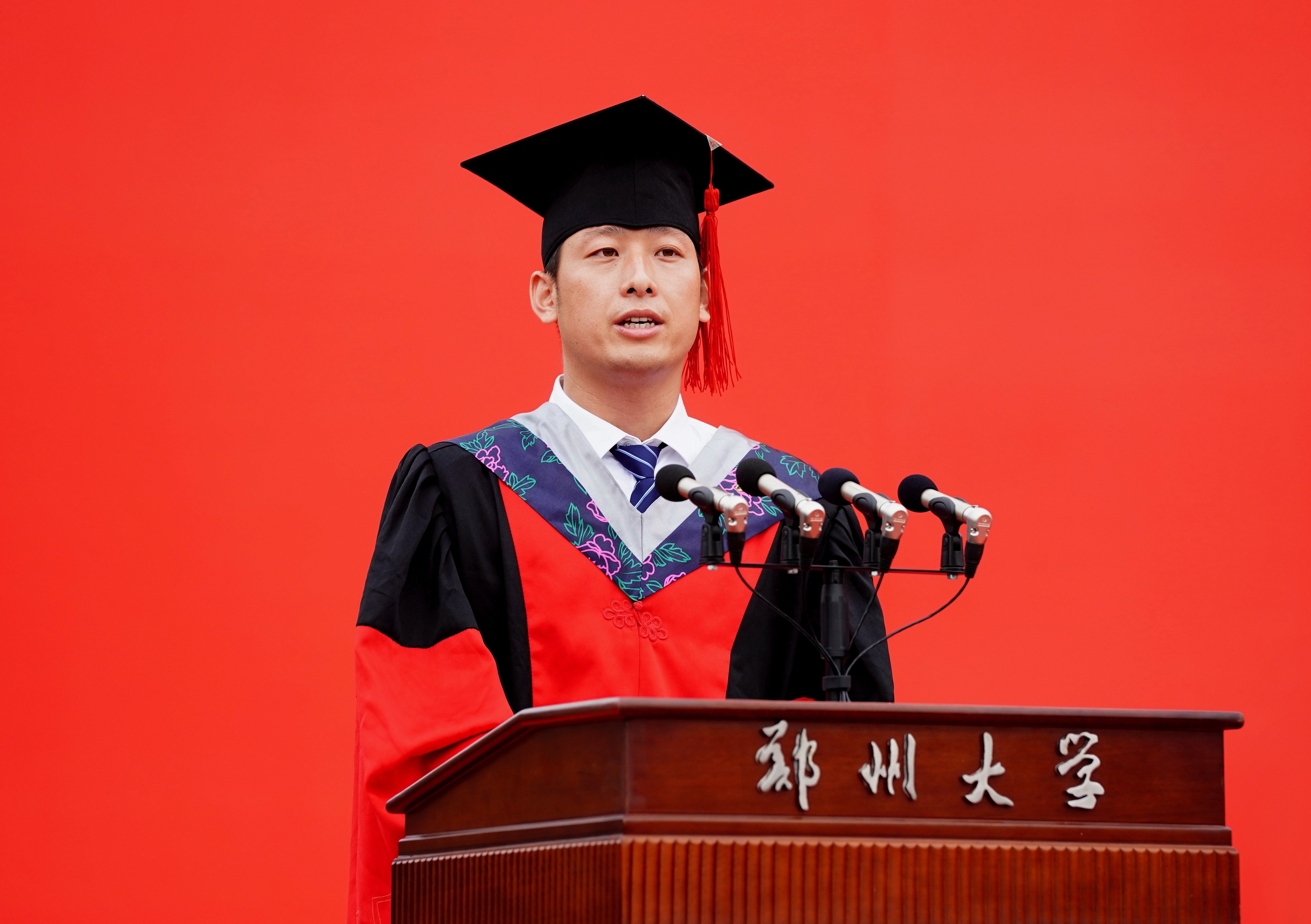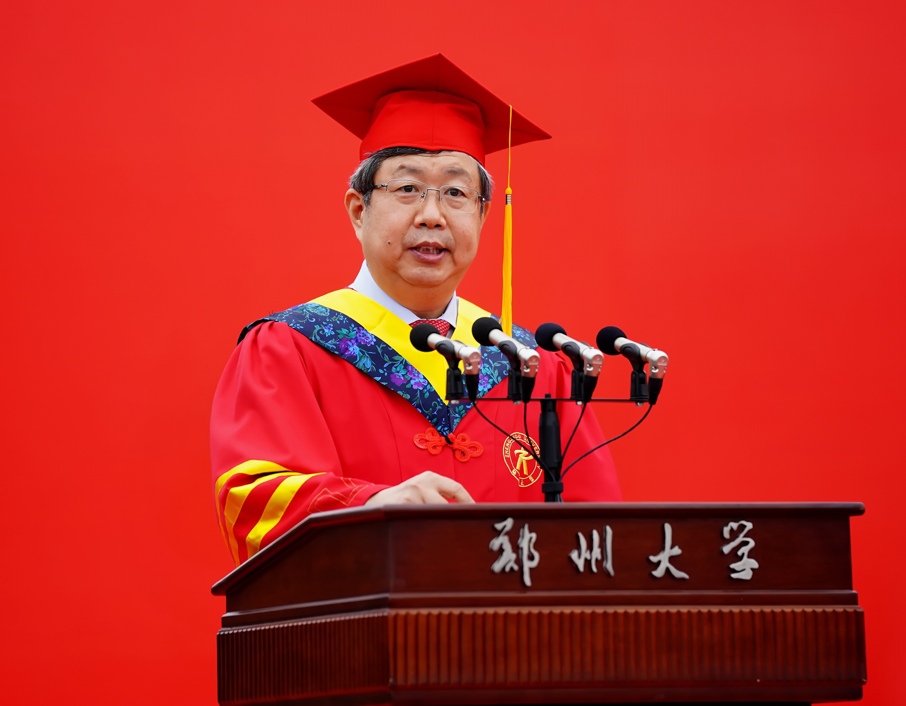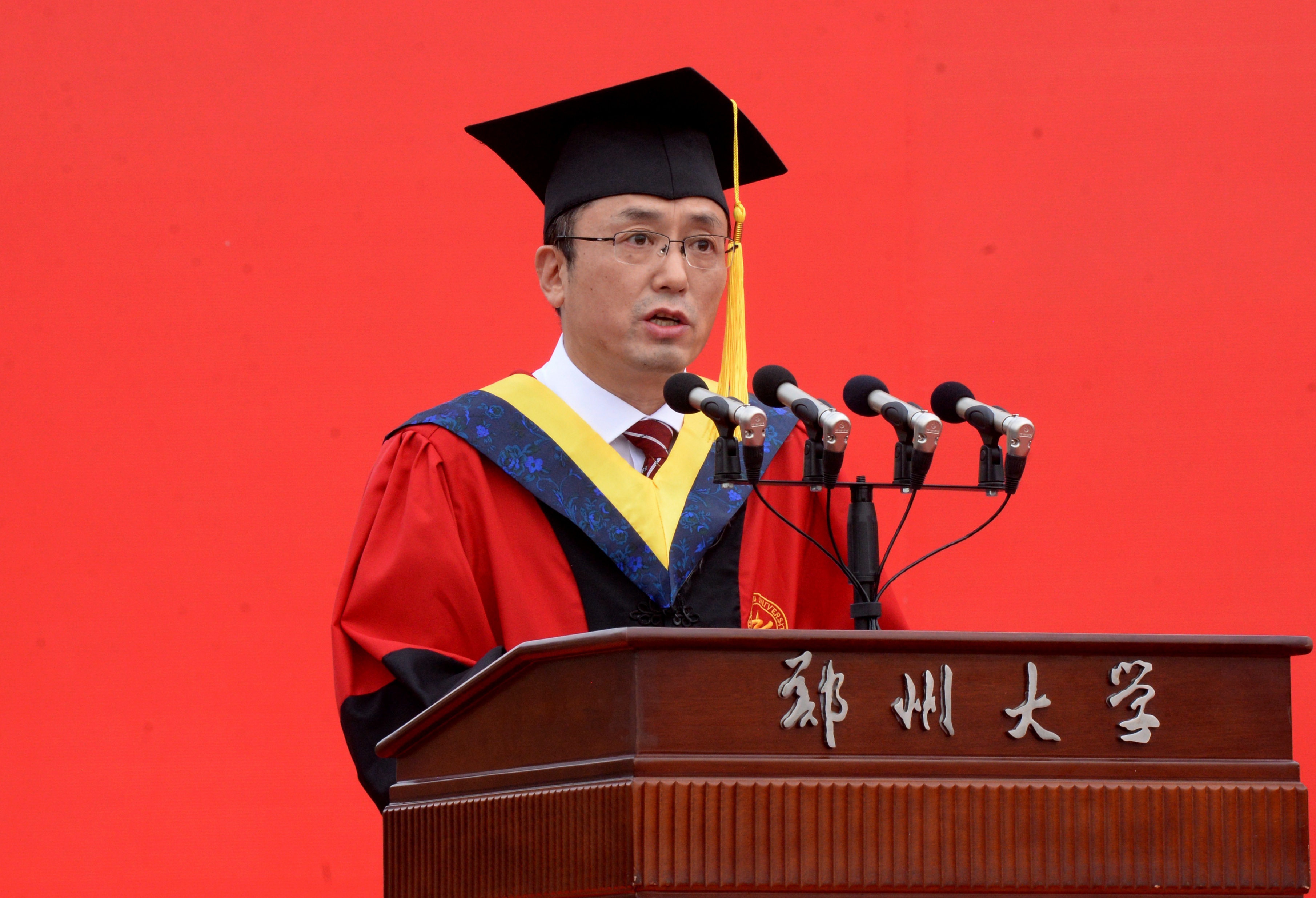 他寄语全体毕业生,面对新生活,要脚踏实地,只要坚持脚踏实地的人生态度,就会找到光明的事业起点;面对新生活,要拥抱社会,走向社会,要做学习者,更要当好主人,积极拥抱社会;面对新生活,要坚定信心,“我是郑大的”意味着你在郑大获取的专业知识、专业技能与思维方式,更意味着信心。