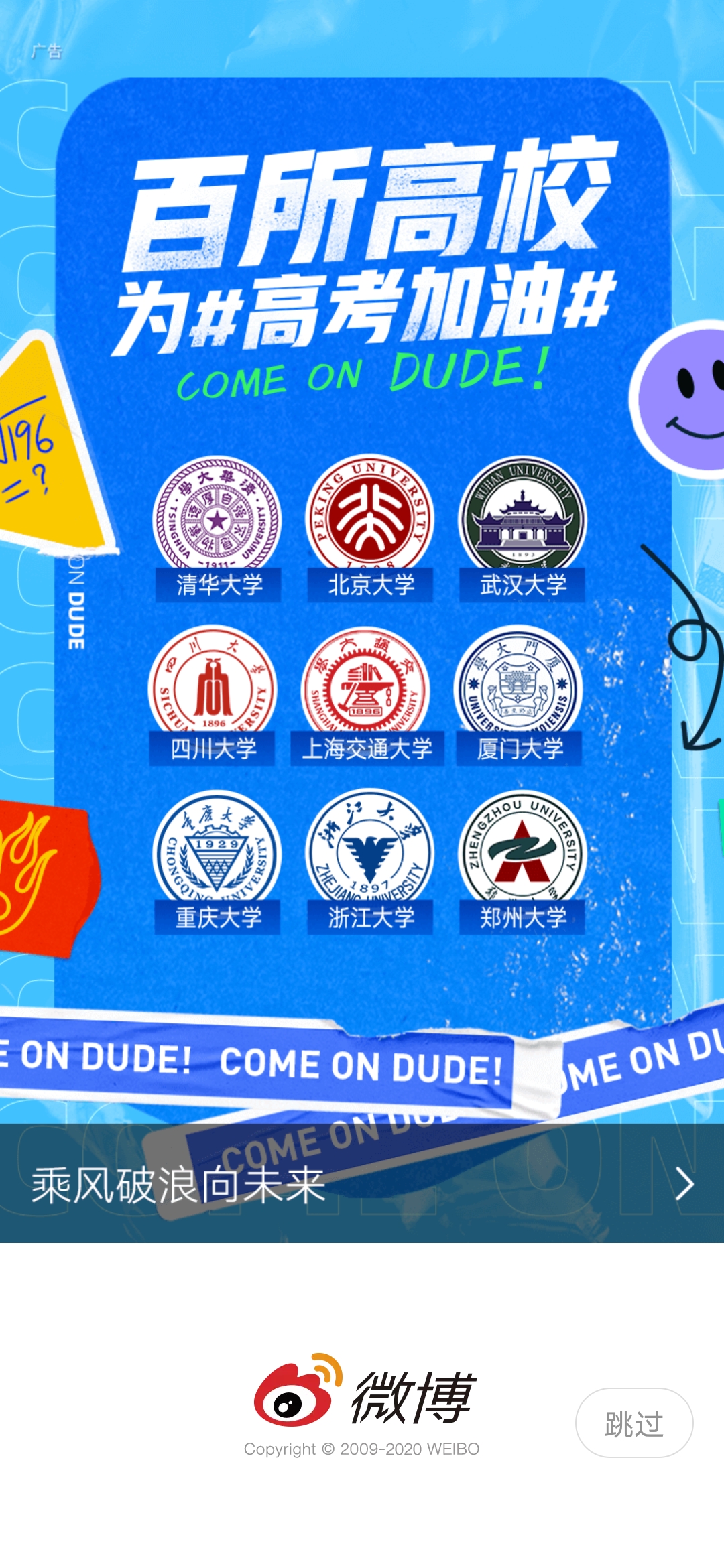 6月22日,由微博校园联动全国多所高校发起#高考加油#话题活动。目前,话题总阅读量超过216.4亿,总讨论量超过6975.8万。bat365在线中国官网登录入口官方微博及时发布权威消息,传播学校高招最新动态,以多种形式助力和服务高三学子,广泛宣传我校办学工作、校园特色,增强高三学子参加高考的信心决心,参与话题活动的发博量、互动量、阅读量均表现优异,累计互动量达3.1万,累计阅读量达326万,跻身全国TOP50高校,获得新浪微博颁发的2020#高考加油#线上话题活动表彰。7月6日,bat365在线中国官网登录入口与清华大学、北京大学、浙江大学等8所知名高校一同作为活动封面高校,出现在新浪微博开机画面中。