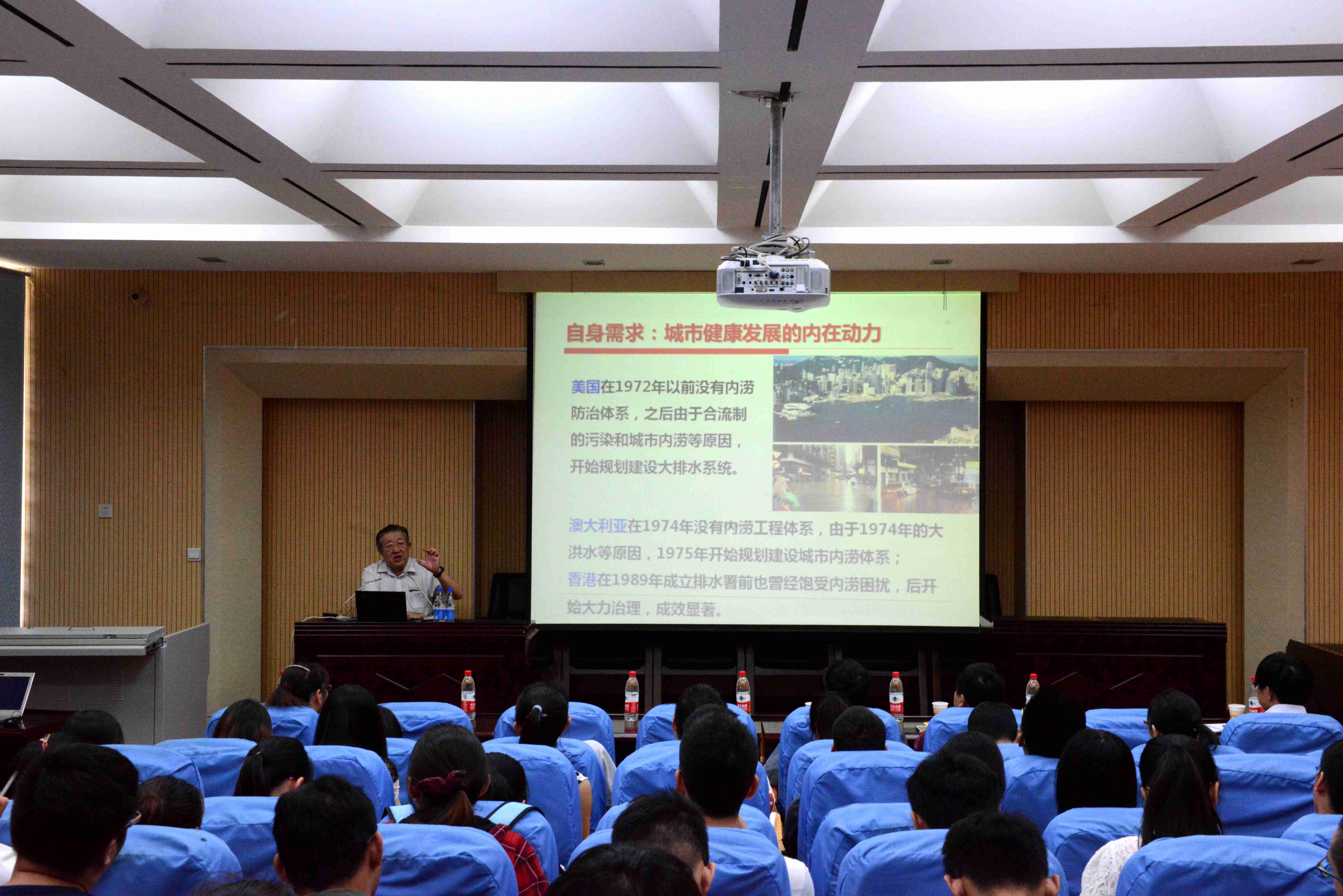 报告会从新形势下我国城市洪涝问题出发,分析了我国城市洪涝的现状,深入剖析了城市洪涝灾害的成因,在总结现有防治措施的基础上,提出了新形势下城市洪涝的防治措施与方案。王院士的报告精彩纷呈,赢得了在场师生的热烈掌声。会后,王院士与师生们进行了互动和交流,并对我校水利与环境学科今后的发展提出了自己的建议。
