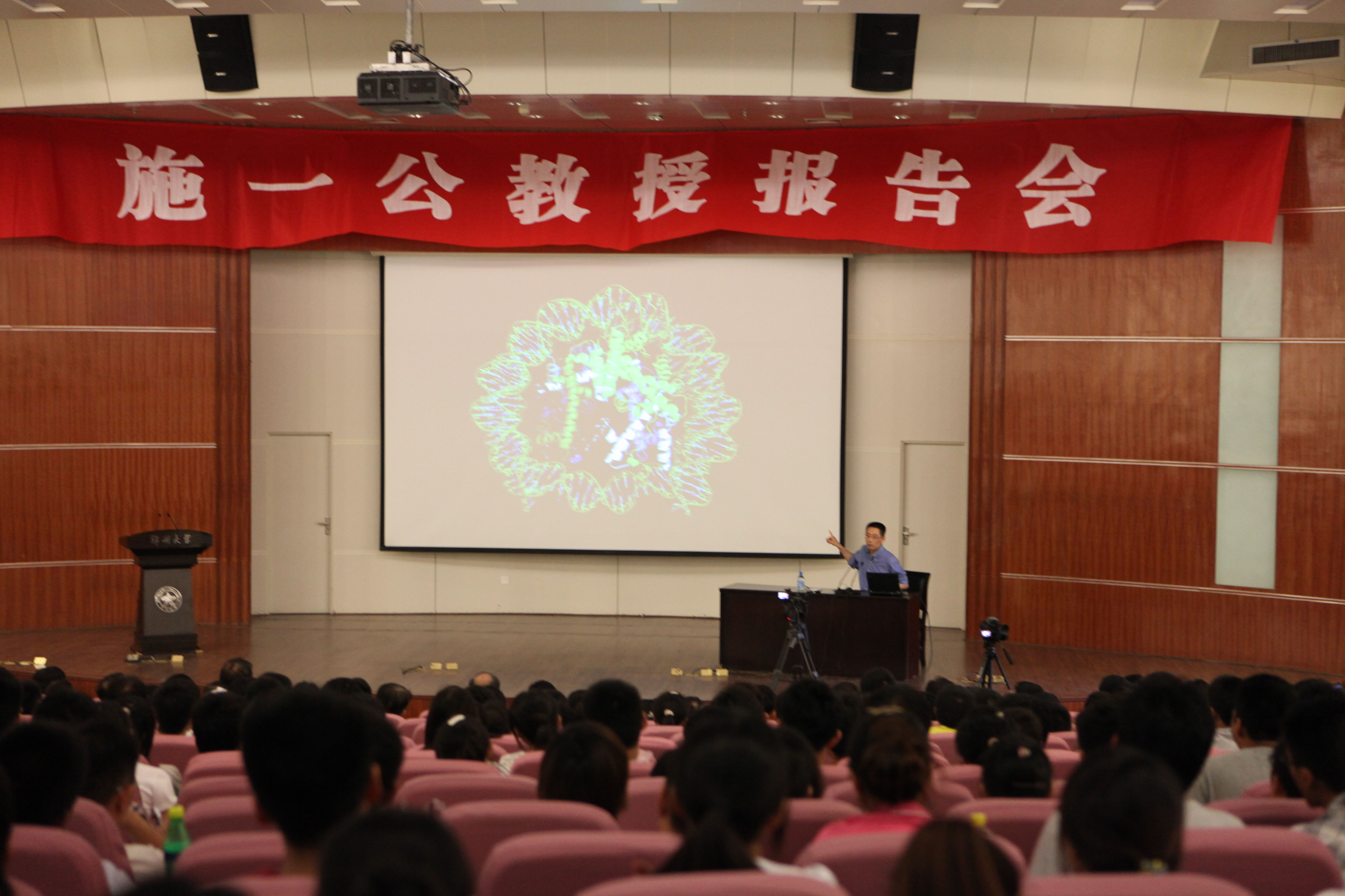 施一公教授是著名的结构生物学家。现任清华大学生命科学学院院长,教授、博导,长江讲座教授,国家杰出青年基金获得者,“千人计划”首批国家特聘专家。其领导的实验室主要运用X-射线晶体学,结合其它生物物理和生物化学方法研究生命科学的基本问题,在细胞凋亡调节机制、生物大分子机器组装与功能、重要膜蛋白结构与机理三个主要研究领域做出了重要的原创贡献,迄今发表SCI论文125篇,其中34篇以通讯作者发表于《自然》、《科学》、《细胞》,被SCI引用14000余次。其团队取得的科研成果于2010、2011年连续两次入选“中国高校十大科技进展”,2012年被《科学》“年度十大进展”重点引用并入选“中国科学十大进展”。 施一公教授于2003年获得国际蛋白协会颁发的“鄂文西格青年科学家奖”,2008年当选美国霍华德休斯医学研究院研究员(HHM I Investigator,因全职回国而婉拒),2010年获国际赛克勒生物物理学奖、香港求是科技基金会“杰出科学家奖”、谈家桢生命科学终身成就奖、2011年获华人生物学家协会颁发的吴瑞奖(终身成就奖),2013年获得英国约克大学荣誉博士学位,2013年入选美国科学院、人文与科学院外籍双院院士。