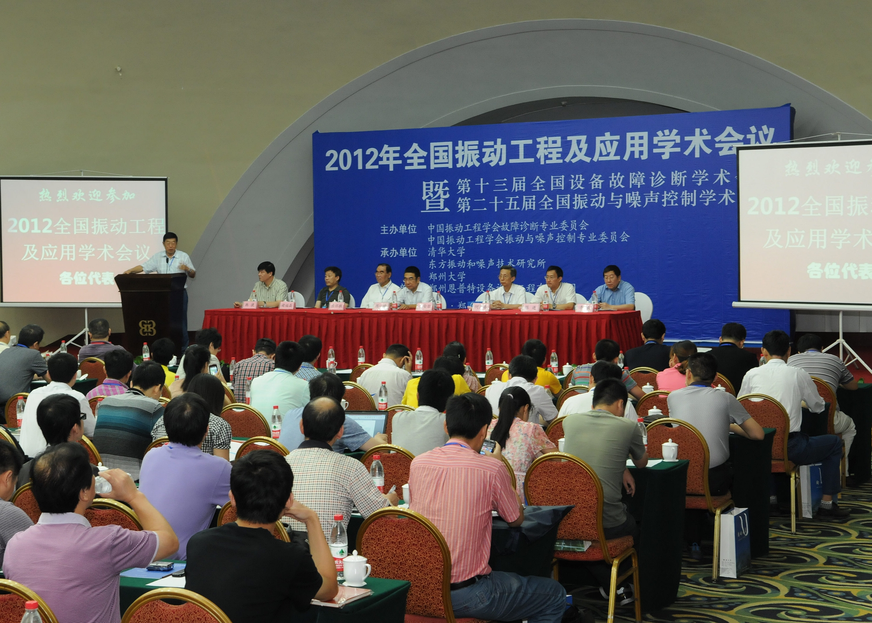 由中国振动工程学会主办,清华大学、bat365在线中国官网登录入口承办的2012年全国振动工程及应用学术会议日前在郑州召开。中国工程院院士、故障诊断专业委员会理事长高金吉院士,我校党委常务副书记陈一峰出席了大会并致辞。来自全国一百多所高校、企事业单位的350余名代表参加了大会。