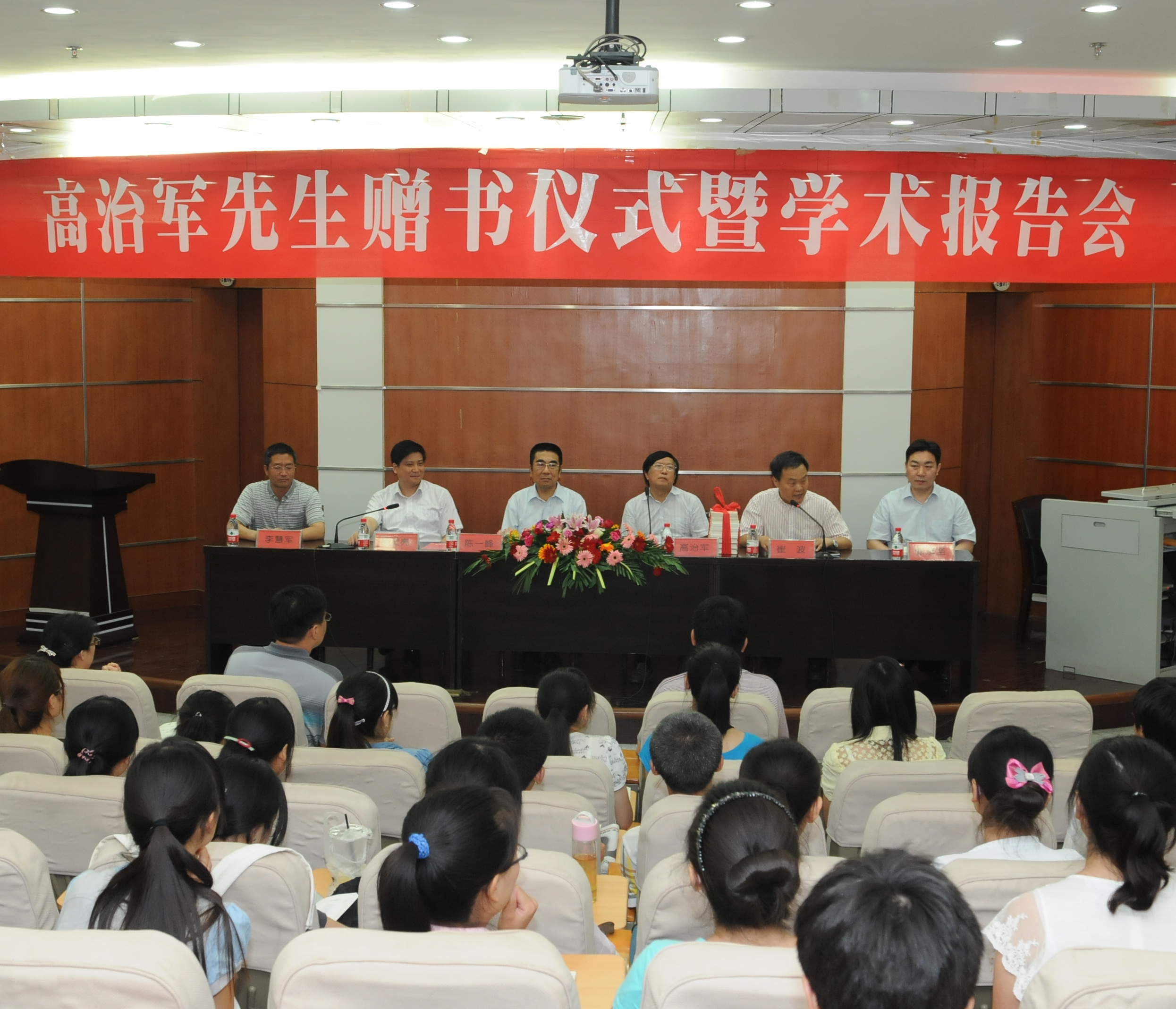 6月7日下午,高治军先生赠书仪式暨学术报告会在我校图书馆第二报告厅隆重举行。我校党委常务副书记陈一峰、党委副书记吴宏亮出席了仪式,图书馆馆长崔波主持了报告会。校党委组织部、党委宣传部、图书馆和文学院的相关负责同志及文学院的110名同学参加了此次大会。