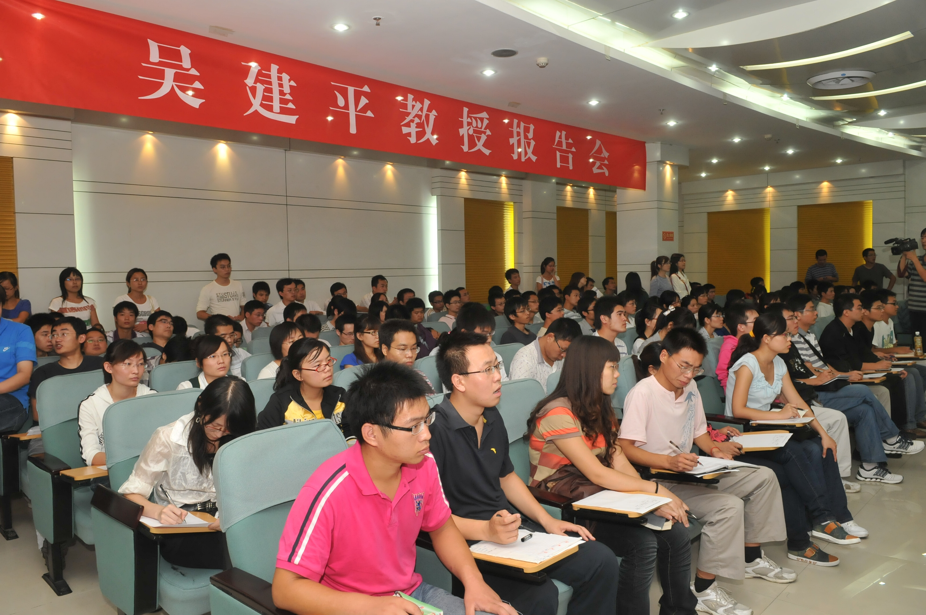 在图书馆第三学术报告厅,吴建平教授从互联网的中国用户的数据调查入手,分析了中国互联网的使用状况和发展潜力,讲解了互联网的基本技术优势和技术核心及其应用,尤其在分析了演进中创新的下一代互联网及其面临的主要技术挑战和迫切需要解决的难题。吴教授通过比较国外发达国家下一代互联网和IPV6的新进展以及中国互联网的研究历程,得出新一代互联网实行电信网、广电网、互联网的三网融合趋势的结论。他认为,下一代互联网已经成为各个国家重大战略的需求。中国走科技创新之路,关键是研究互联网技术,总结互联网发展的基本规律,找出合适的、有效的技术路线,建立纯IPV6,突破互联网发展的瓶颈,实现高技术的自主创新和跨越式发展。开发和建设新一代互联网,是国家的战略需求,未来三年是发展的关键,创新是互联网技术进步的灵魂。