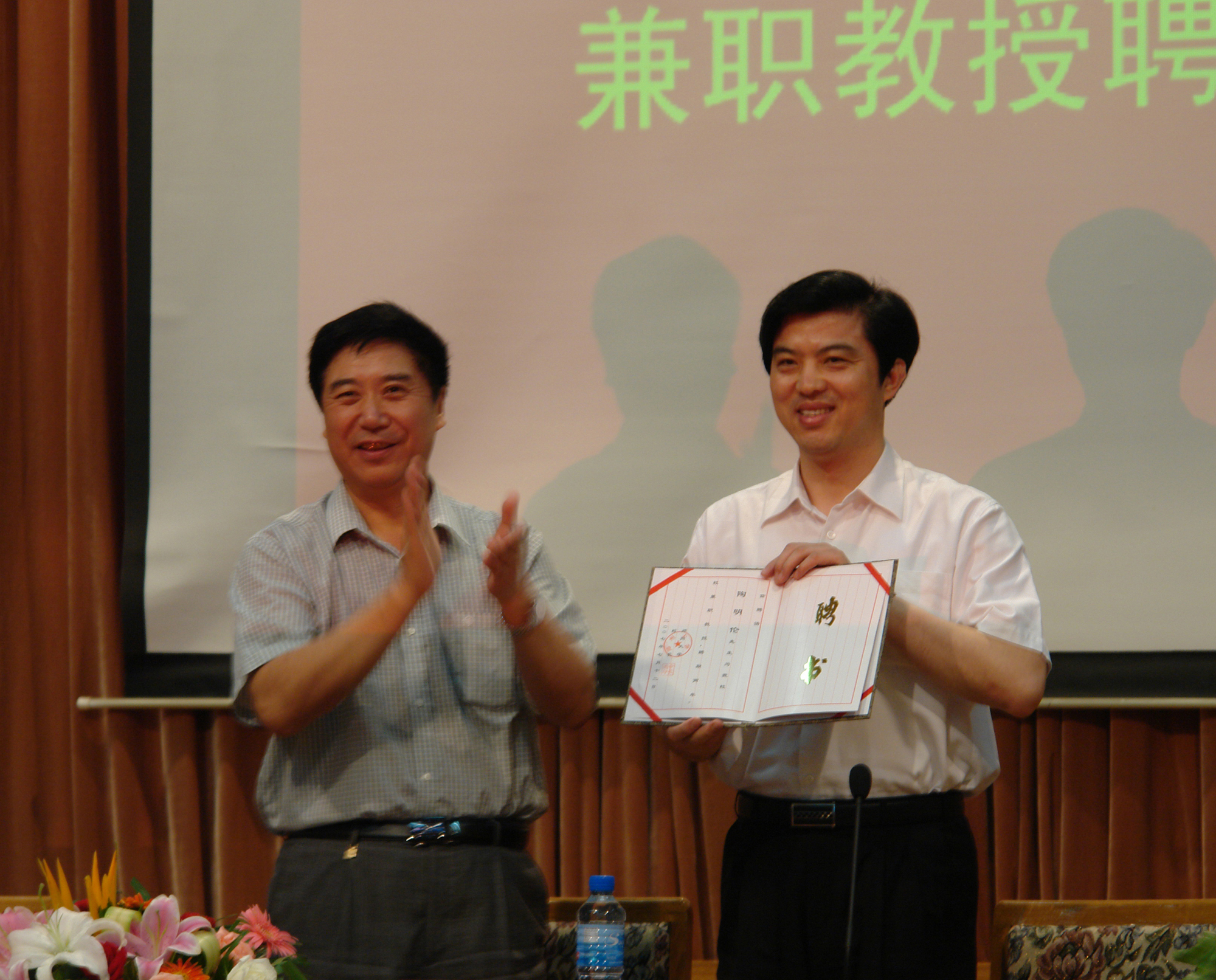 7月19日,共青团河南省委书记陶明伦受聘为我校兼职教授,并为公共管理学院师生做了“青年干部的成长之路”的专题报告,徐振鲁副校长为陶明伦教授颁发了聘书。团省委组织部长窦旭东参加了报告会。