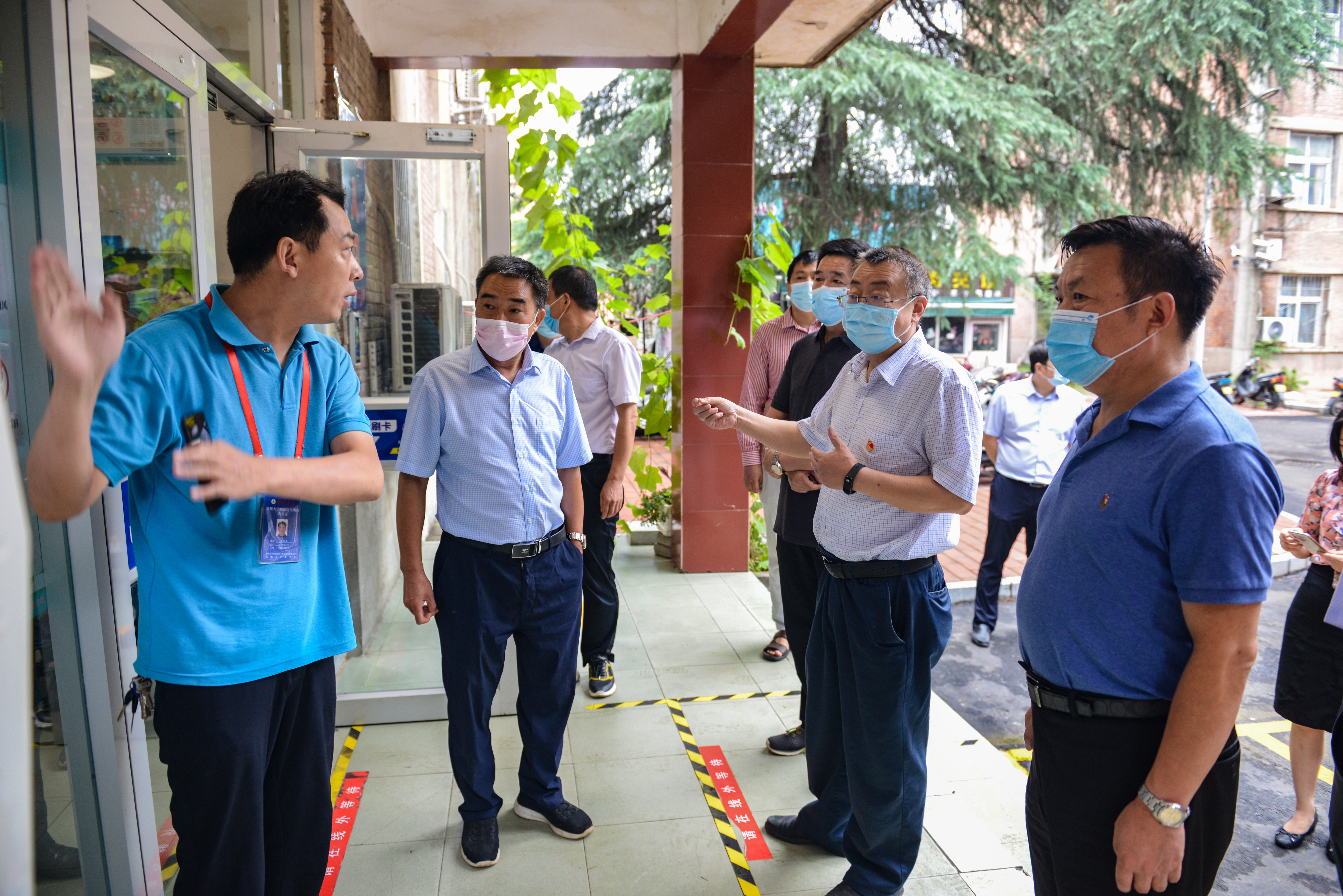 在学生生活区,校领导先后来到菊园快递服务中心、秋穗园餐厅、后勤生活用品服务点,仔细察看了快递收发点、餐厅等场所的通风情况,并亲身体验了自动感应消毒装置。宋争辉强调,要严格日常管理,严格活动管控,强化食堂、宿舍、实验室等重点场所的疫情防控及安全管理。