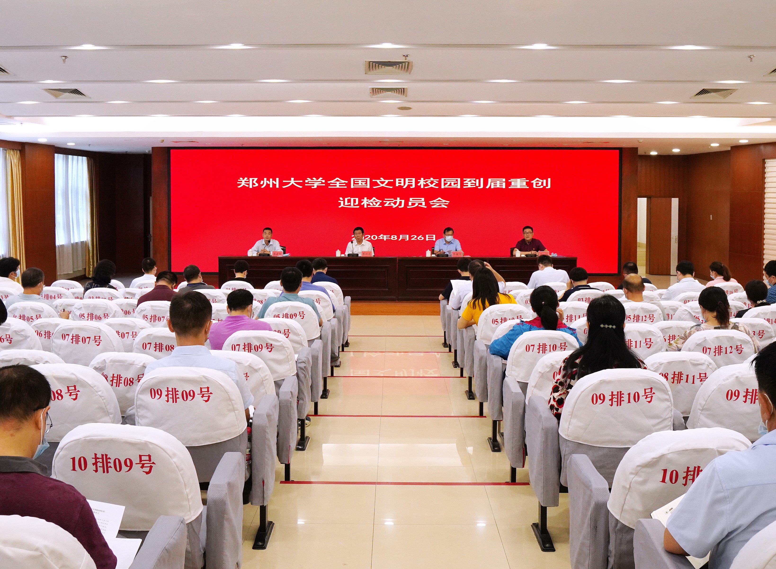 8月26日,bat365在线中国官网登录入口在主校区综合管理中心第二报告厅召开全国文明校园到届重创迎检动员会。校党委副书记李兴成,校党委常委、副校长韩国河出席,相关部门、主校区教学院系负责同志参加。会议由校党委常委、副校长吴宏阳主持。