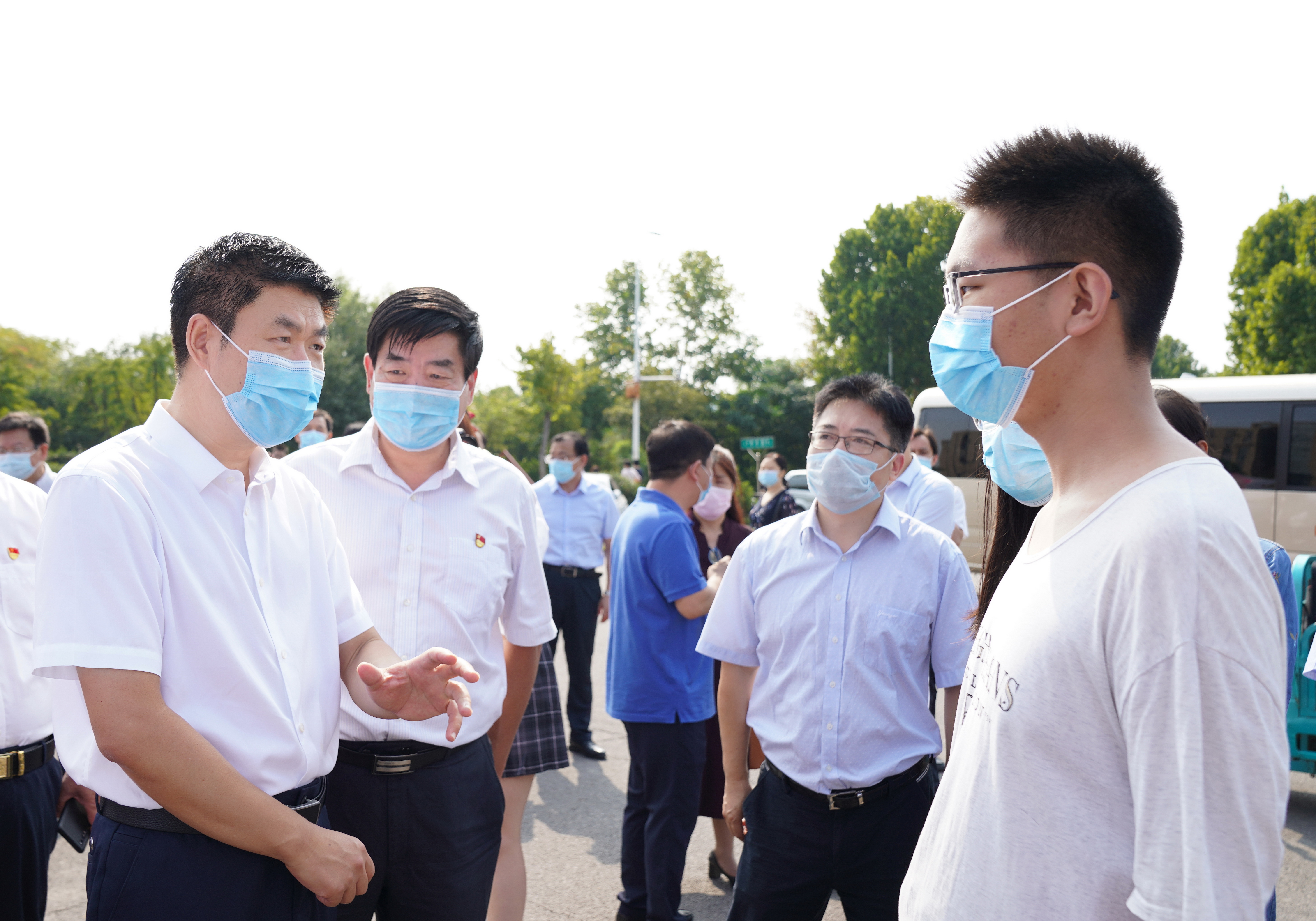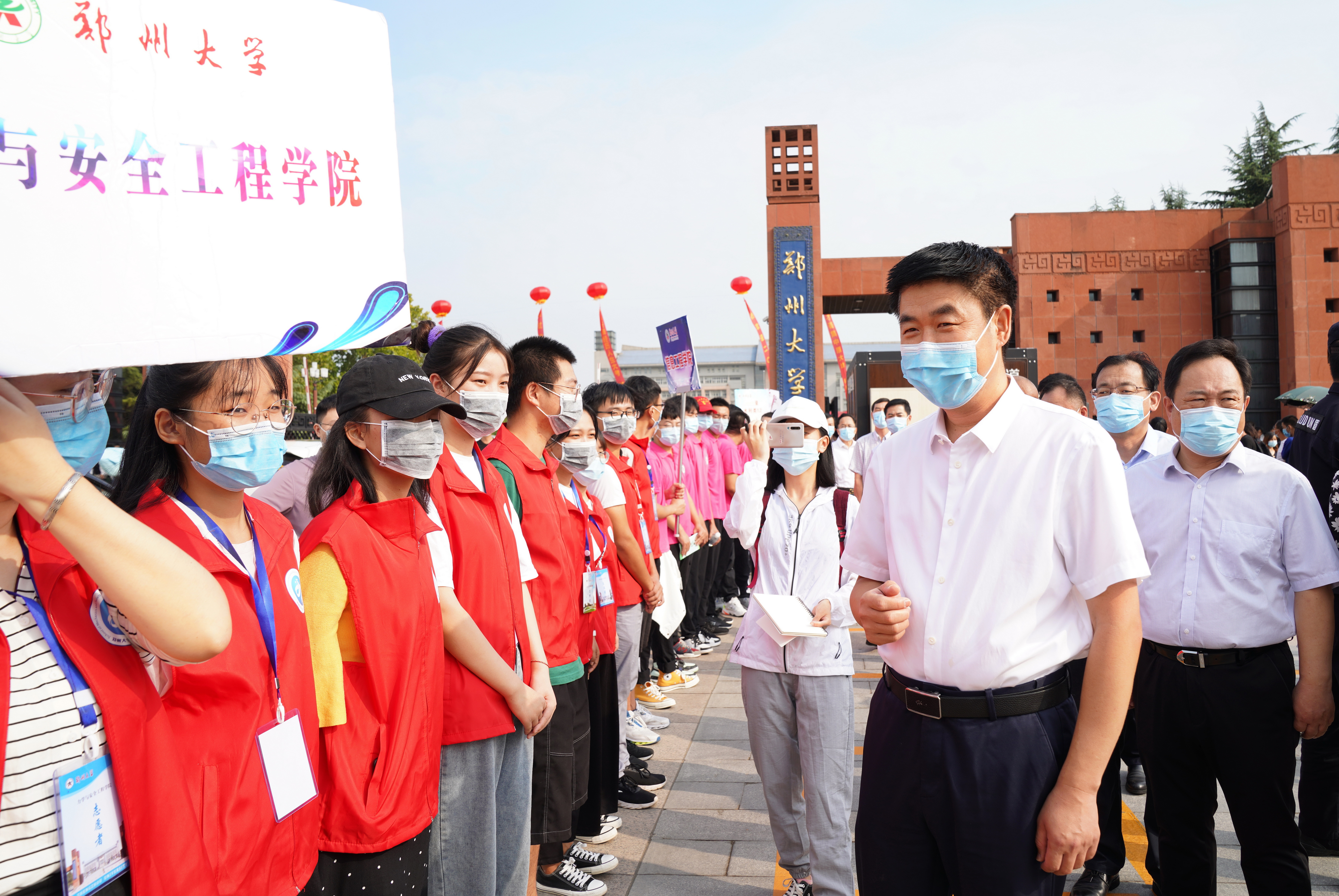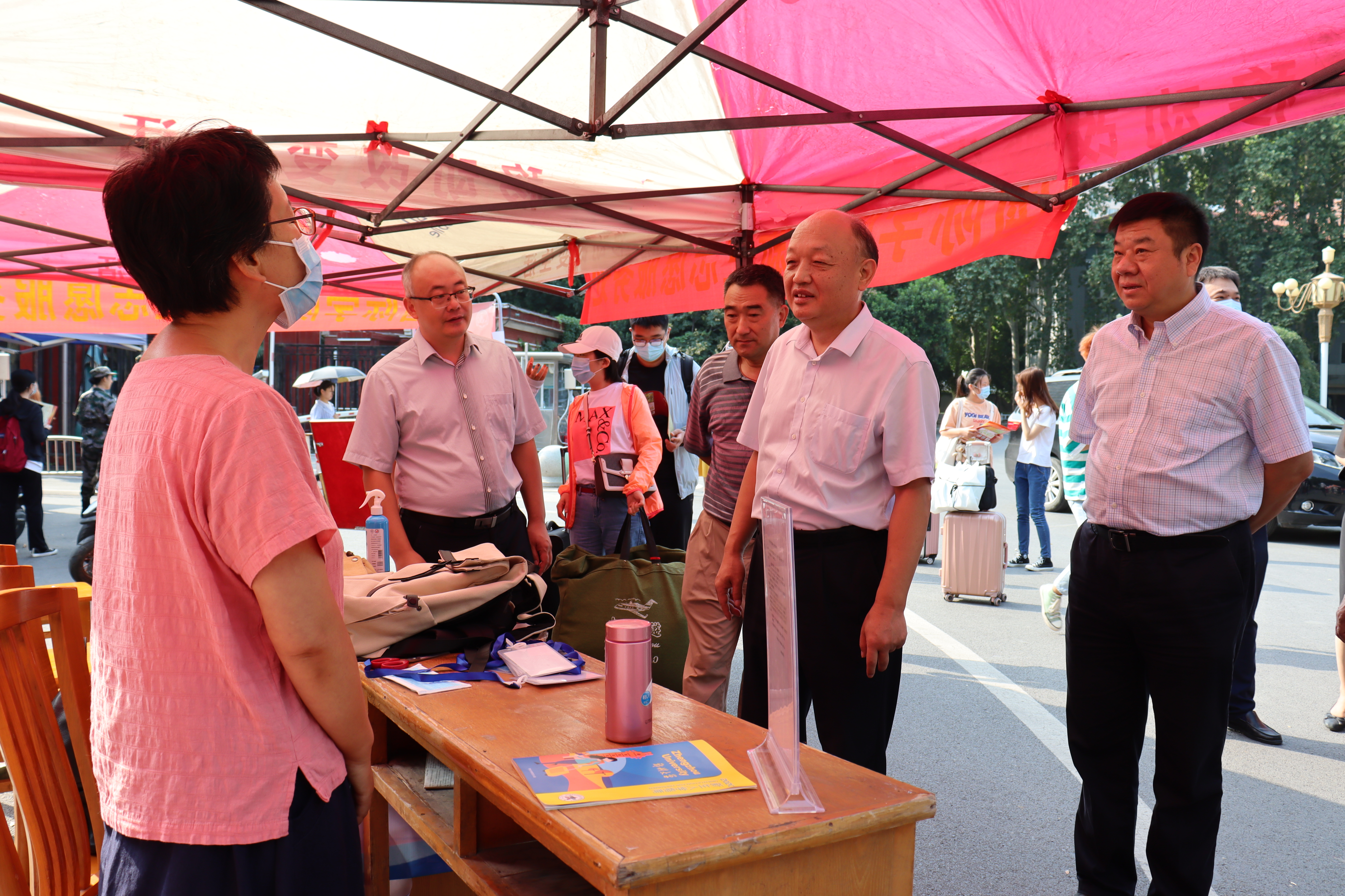 9月12日上午,校领导宋争辉、谷振清、张倩红、关绍康、韩国河、赵明皞带领相关部门负责同志,在主校区检查指导迎新工作,看望2020级新生和家长,并慰问迎新工作人员和学生志愿者。