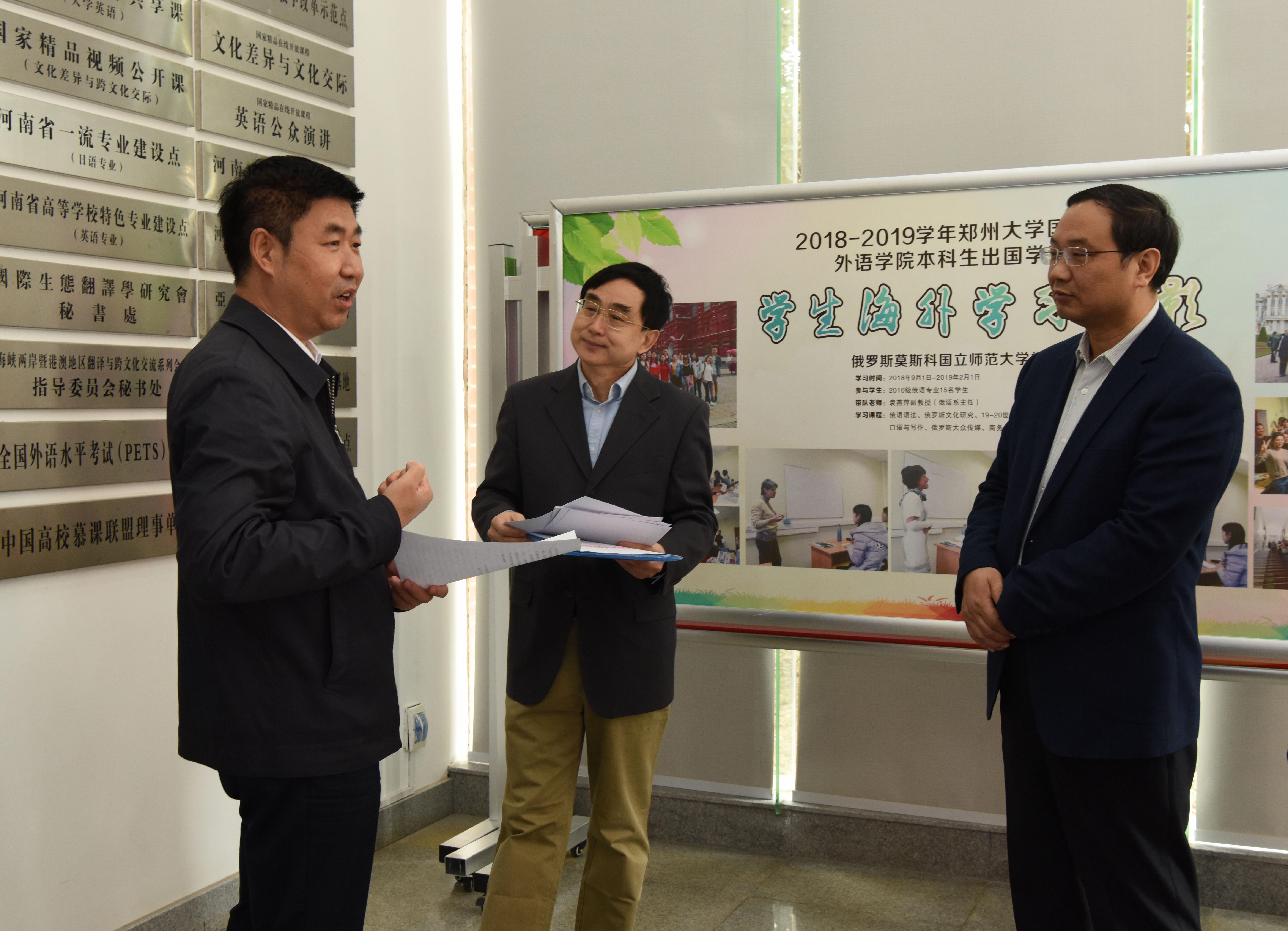 在外国语与国际关系学院和中国工程科技发展战略河南研究院办公室、中国科学院河南院士联络办公室,宋争辉深入展览室、教工之家、党员之家,对两个单位文化建设给予充分肯定。他强调,一流文化是一流大学的重要内涵和基本特征,建设世界一流大学需要一流文化的支撑。要将文化自信融入大学精神,强化创新理论武装,深入落实习近平总书记关于文化建设的重要论述,不断丰富“求是 担当”校训精神的内涵和特质。要以文化育人推进立德树人,以文化建设的实际成效,帮助学生扣好人生第一粒扣子,给学生心灵埋下真善美的种子,培养更多有灵魂的新时代大学生。要以社会服务引导学术发展,营造以社会服务为导向的学术文化氛围,在服务区域经济社会开放发展中,积极发挥学术创新和人才培养作用。