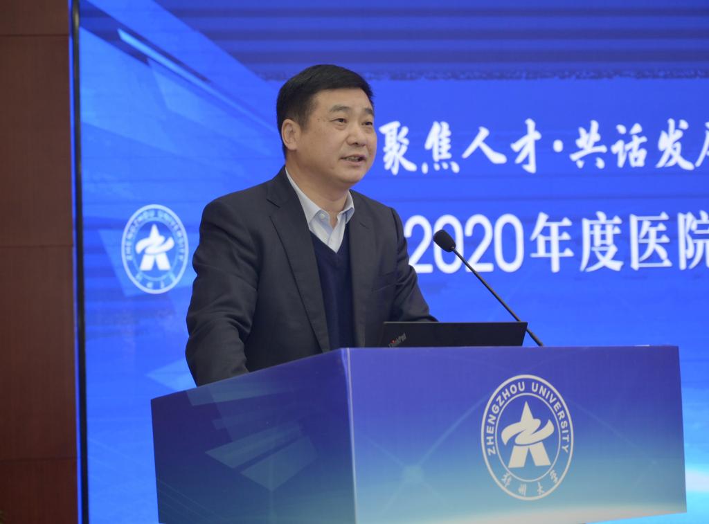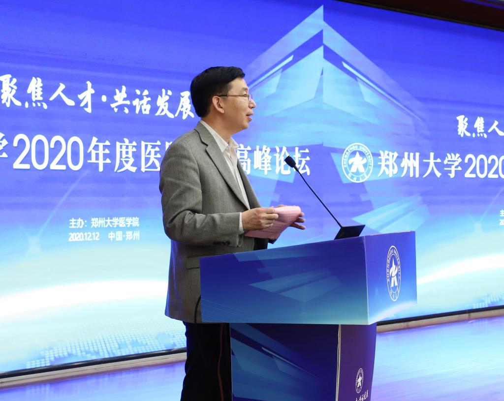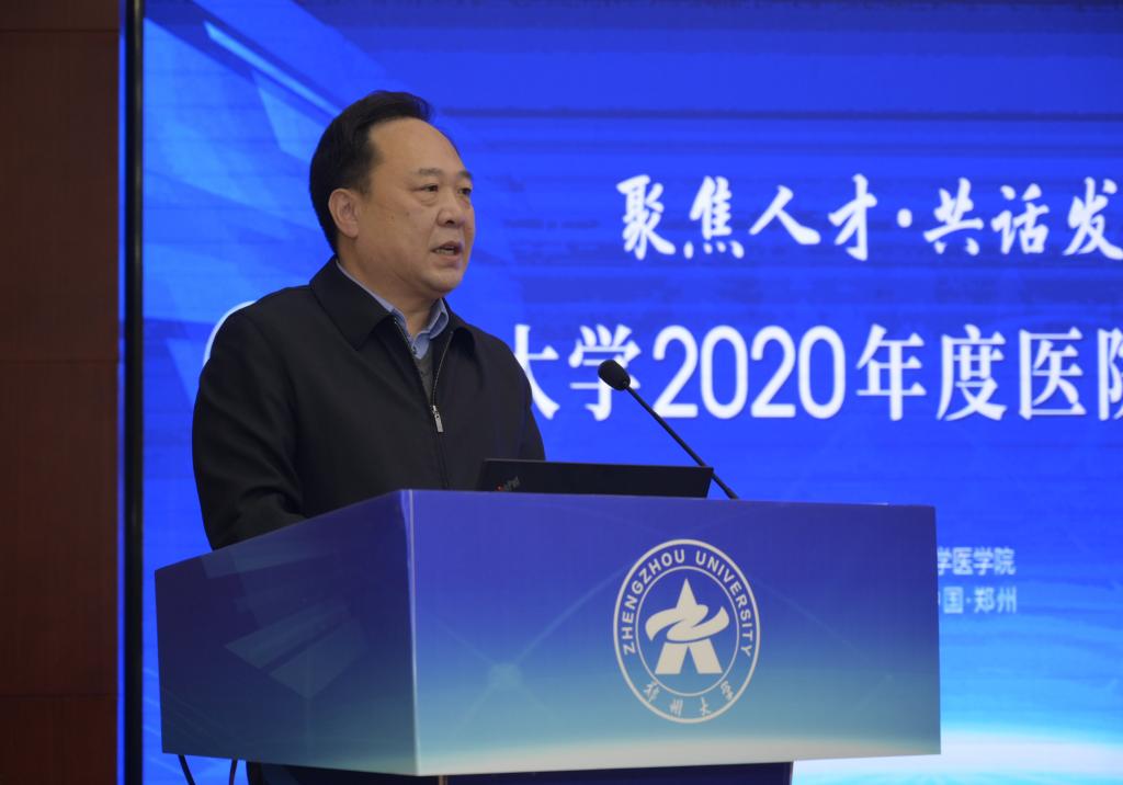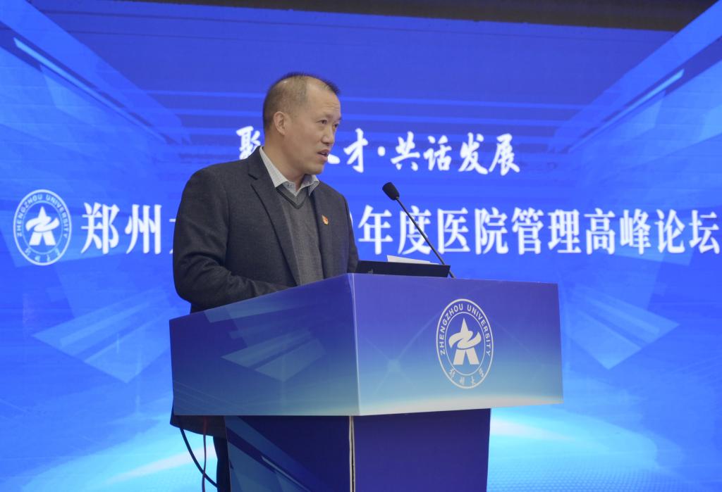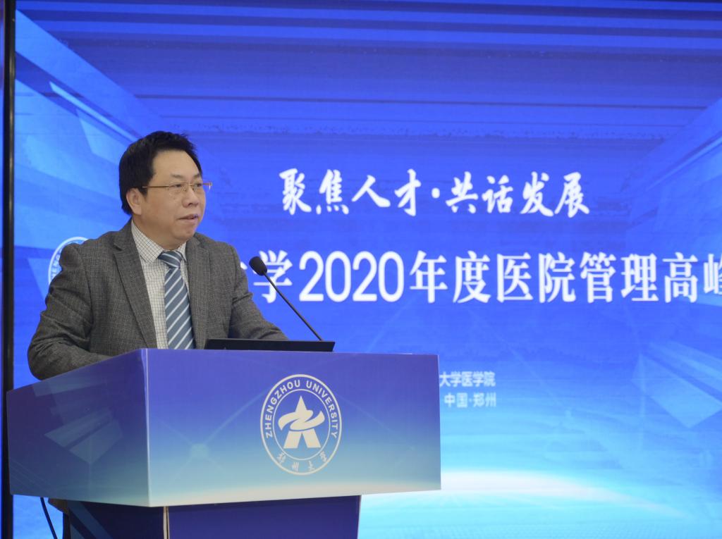 12月12日,bat365在线中国官网登录入口以“聚焦人才·共话发展”为主题举办2020年度医院管理高峰论坛。中国研究型医院学会会长何振喜,国家卫生健康委人才交流服务中心党委书记张俊华,中南大学党委常委、副校长陈立章等,省卫生健康委员会党组书记、主任阚全程,河南省教育厅党组书记、厅长郑邦山,省教育厅党组成员、副厅长张传广,bat365在线中国官网登录入口党委书记宋争辉,党委副书记、医学院党工委书记谷振清,副校长、第一附医院院长刘章锁,副校长、医学院院长董子钢等出席。省卫健委和省教育厅相关处室负责人,学校有关职能部门、医学院、医学科学院、10所附属医院负责同志等参加论坛。谷振清、刘章锁、董子钢分别主持论坛有关环节。根据疫情防控需要,论坛采用线上线下相结合的方式举办,主会场设在第一附属医院郑东院区第二报告厅,各附属医院另设立分会场。