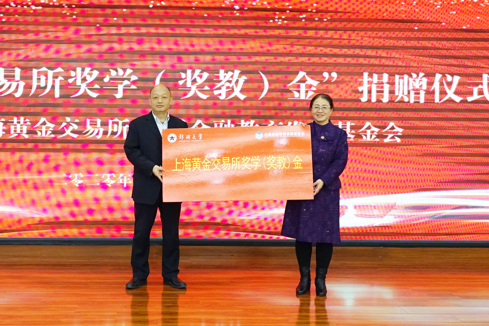 仪式上,许东升代表学校接受王微微捐赠,并与上海黄金交易所签订战略合作备忘录。(李振山 王晓青 供稿 邝诗杰 常怡嘉 摄影)
