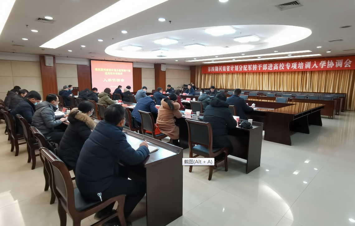 1月12日上午,河南省计划分配军转干部进高校专项培训第四期入学协调会在bat365在线中国官网登录入口主校区举行。校党委常委、副校长吴宏阳出席并讲话,学校相关职能部门和13个承训学院的负责人参加了会议。