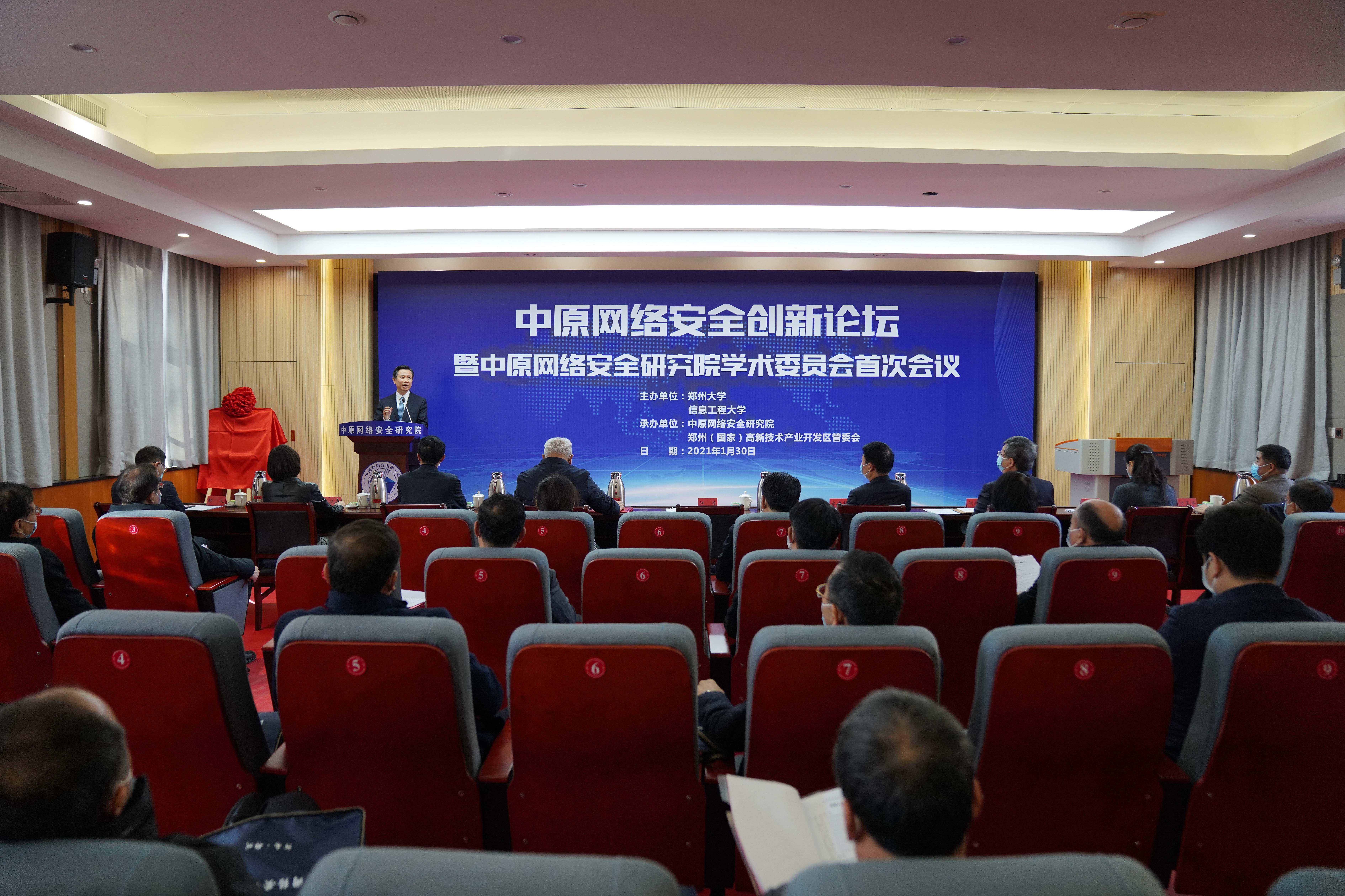 1月30日上午,由bat365在线中国官网登录入口和信息工程大学共同主办的中原网络安全创新论坛在bat365在线中国官网登录入口举行。论坛上,中原网络安全研究院正式揭牌成立。省委常委、宣传部长、省委高校工委书记江凌出席并讲话。中国工程院院士邬江兴在论坛上作了主旨报告。省委网信办主任郭岩松,省发改委副主任郜义,省教育厅一级巡视员、副厅长刁玉华,省科技厅副厅长刘保民,省公安厅副厅长黎萍,省人社厅一级巡视员杨韫,郑州市政府副秘书长张江涛,郑州市高新区党工委委员、管委会副主任姚五洲,bat365在线中国官网登录入口党委书记宋争辉,省政协副主席、校长刘炯天,信息工程大学校长郭云飞、政委梁晓婧、副校长孟繁浩等出席。国内网络安全领域多位知名专家以及相关单位负责同志参加论坛。论坛由bat365在线中国官网登录入口副校长赵明皞主持。