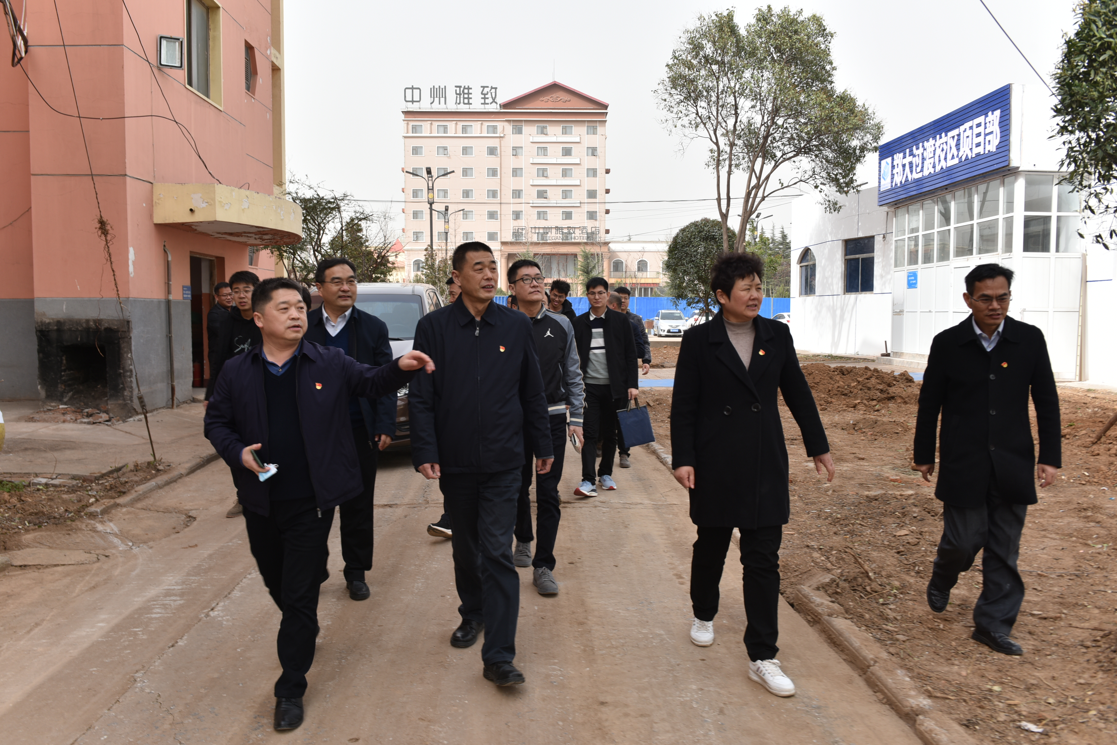 吴宏阳一行在洛阳市人民政府副秘书长李振刊、洛阳市教育局和洛阳城投集团公司负责人的陪同下,查看了过渡校区教学实验楼、学生宿舍、餐厅、教师公寓等楼宇现状和装修改造前期准备情况,并在校区内栽种了香樟树。