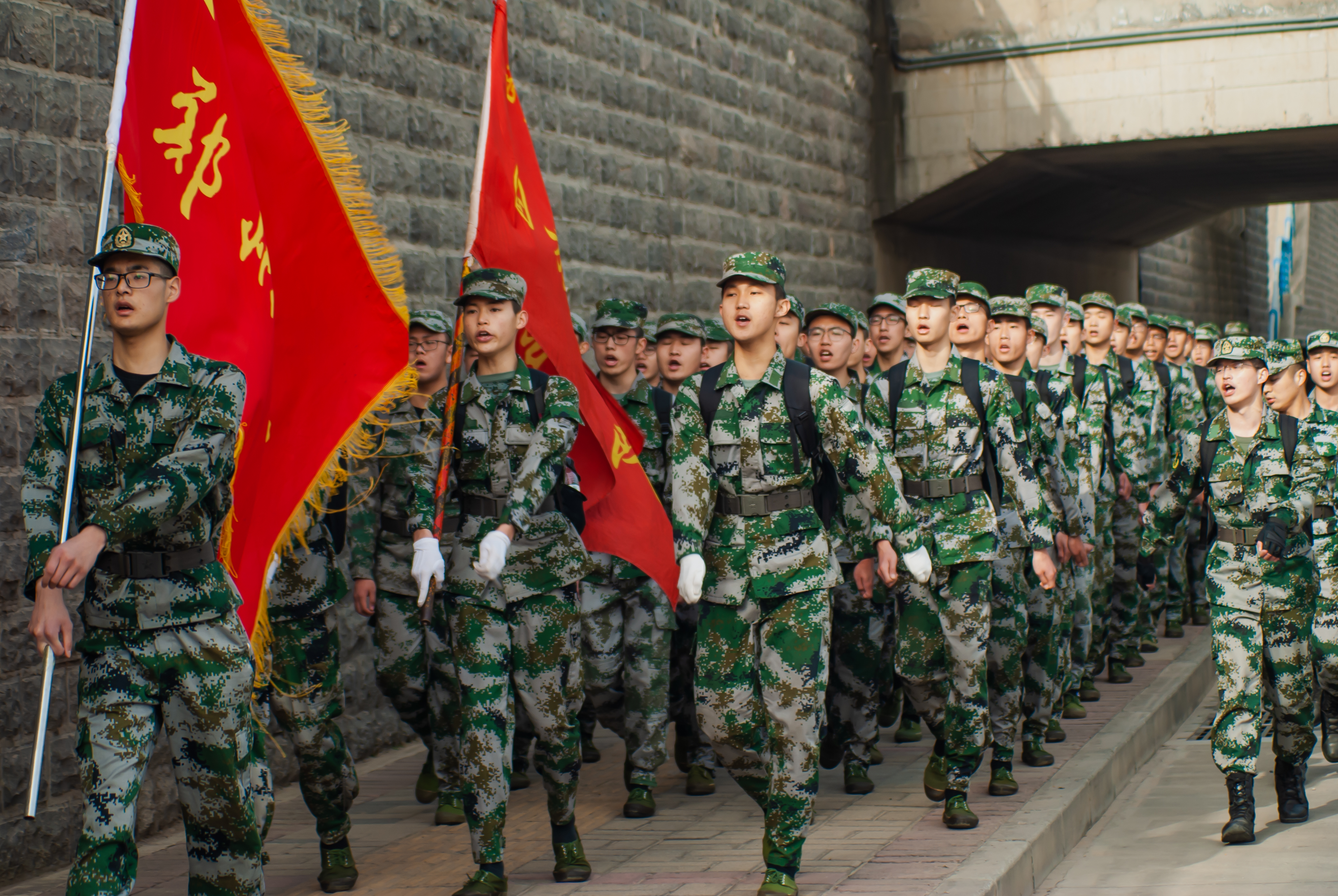 当天清晨,队员们迎着朝霞,唱着军歌,昂首挺胸从学校出发。经过四个多小时的徒步行进,抵达郑州烈士陵园。