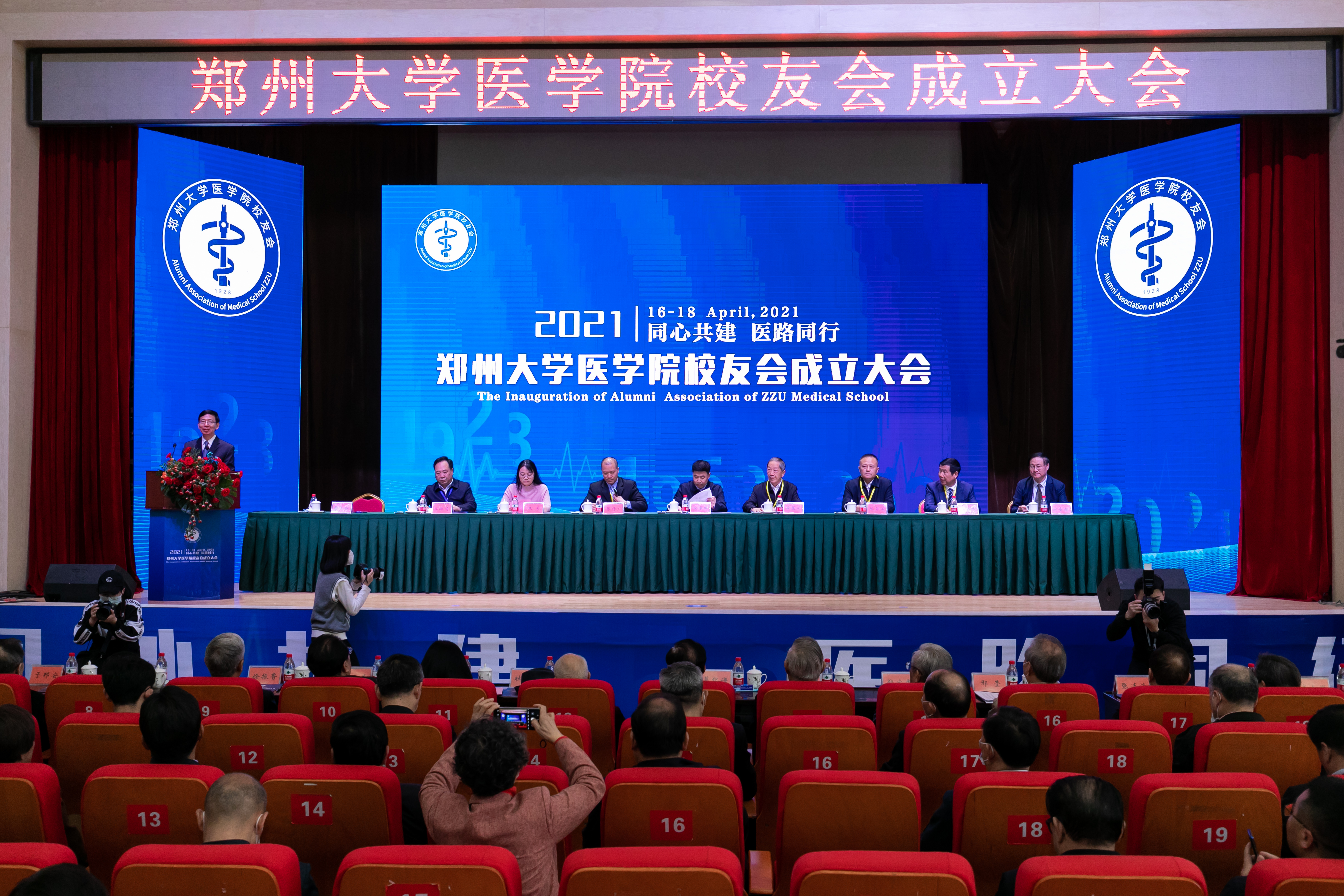 4月17日,bat365在线中国官网登录入口医学院校友会成立大会在医学院校区举行。河南省教育厅副厅长张传广,河南省卫生健康委副主任张若石,河南省科技厅二级巡视员张芳,校领导宋争辉、李兴成、谷振清、刘章锁,董子钢,原河南医科大学党委书记、bat365在线中国官网登录入口原党委书记、河南省教育厅原厅长、河南省人大常委会原副主任蒋笃运,原河南医科大学校长杜百廉,“中国最美医生”、我国眼内异物研究奠基人张效房,77级校友、中国科学院院士阎锡蕴,原河南医科大学老领导、老专家代表,相关职能部门负责同志及部分院系校友会负责同志,医学院相关单位主要负责同志,医学院各年级、全国部分省市校友会的会长、秘书长,校友代表等共200余人参加成立大会。大会由副校长、医学院院长董子钢主持。