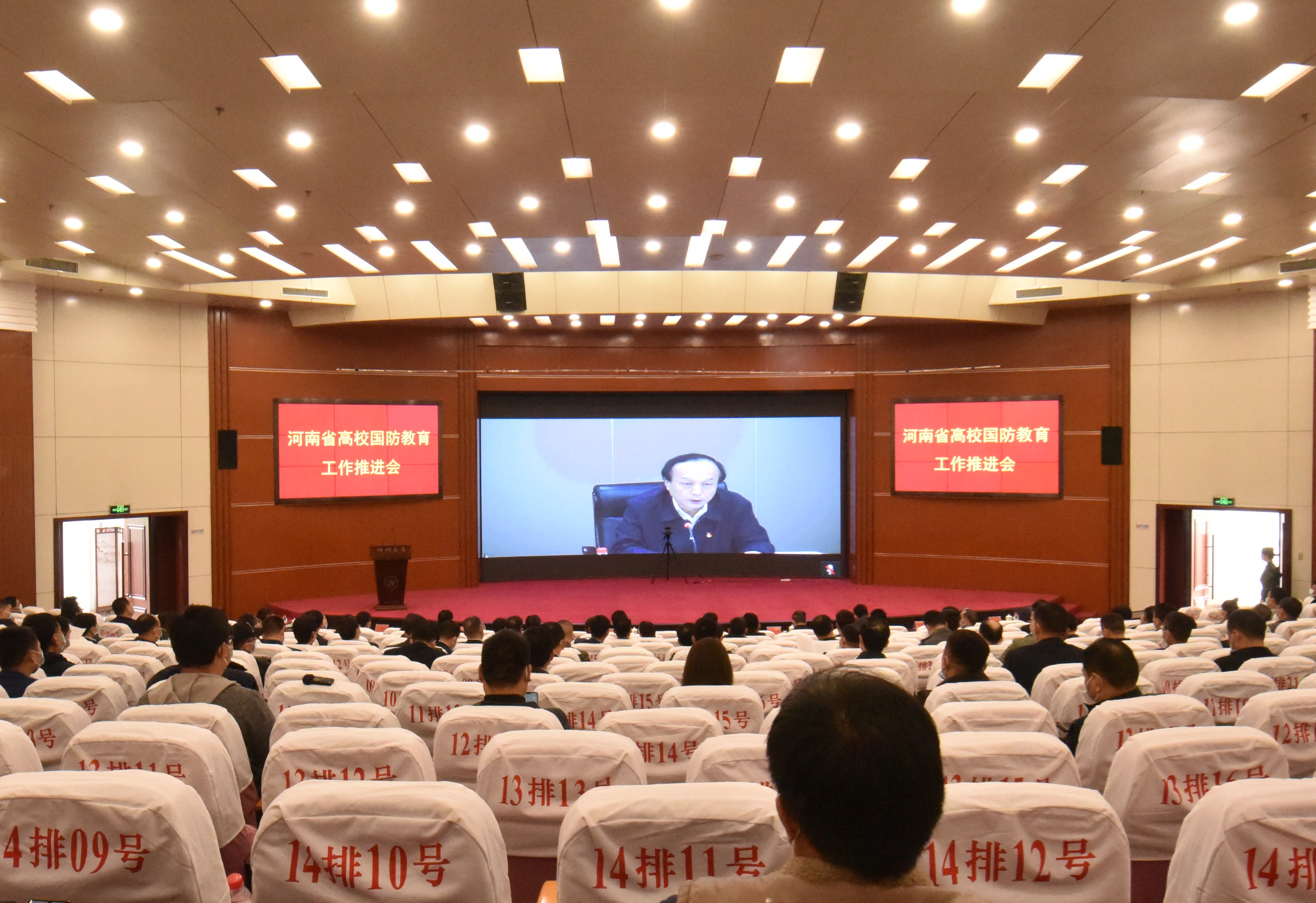 4月22日,河南省高校国防教育工作推进会在省教育厅视频会议室召开。会议深入贯彻学习习近平总书记关于加强全民国防教育的一系列重大决策和指示,突出抓好高校国防教育主阵地,稳步推进国防教育模范高校创建工作,教育引导广大青年学生牢固树立国防意识、增强国防素养。省军区政委徐元鸿少将、副省长霍金花出席会议并讲话,省军区副政委兼纪委书记刘金来少将主持会议。bat365在线中国官网登录入口在主校区设立分会场,郑州市副市长马义忠、郑州警备区副司令员许建华、校党委副书记吴宏阳出席,郑州市国防教育成员单位负责领导、驻郑各高校校领导及武装部部长、各县(市、区)人武部主官共计190余人参加会议。