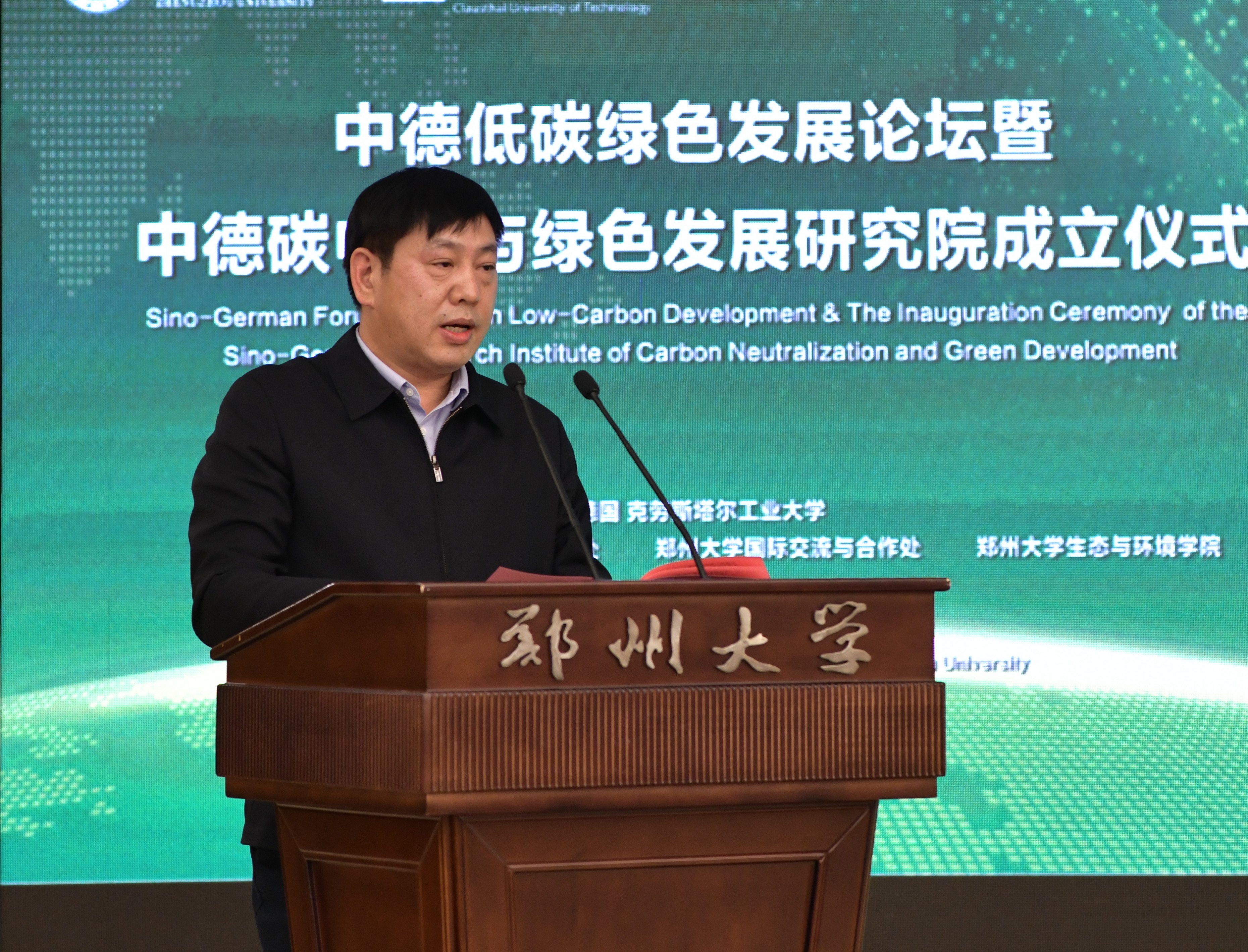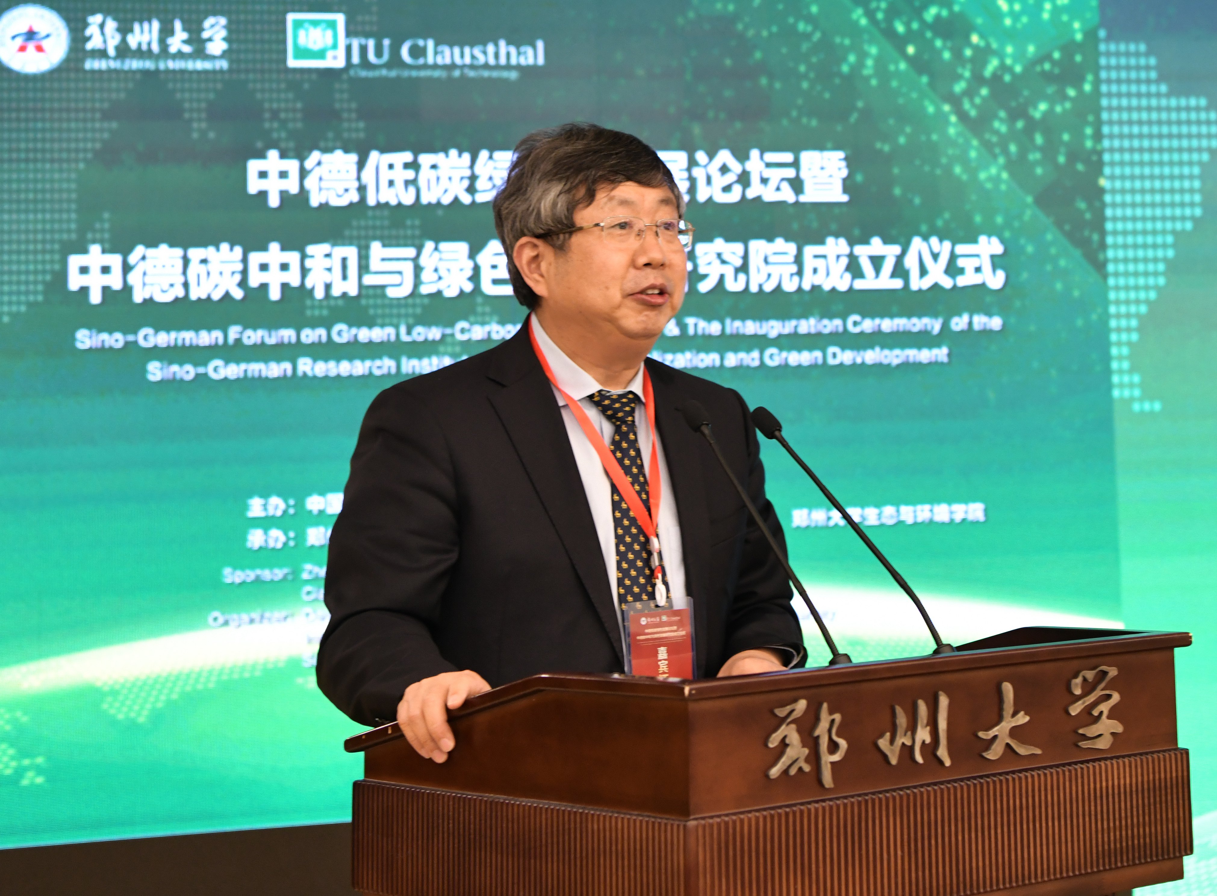 刘炯天致辞。他代表学校向低碳研究领域的中德专家学者及各位领导来宾表示欢迎。他指出,中国是全球气候治理的积极推动者,在经济全球化的今天,应对全球性的发展问题,仅靠单个国家的努力是远远不够的,需要在科学研究和技术开发领域开展广泛的国际合作,共同应对全球变暖这一世界性难题。德国一直是低碳经济的积极倡导者和探索者,气候合作是中德关系发展的重要领域,中德合作加强气候改善和保护能相互学习、相互借鉴,共同促进构建人类命运共同体。克劳斯塔尔工业大学是在德国、世界范围内富有影响力的大学,bat365在线中国官网登录入口是国家确定的世界一流大学建设高校和部省合建高校,双方共建中德碳中和与绿色发展研究院,标志着两校双方合作进入新阶段。他表示,中德碳中和与绿色发展研究院将重点聚焦河南能源革命和产业革命开展研究,积极履行三大任务,一是开展战略研究与咨询,二是开展关键技术攻关助力产业变革、以工程技术突破示范引领低碳绿色发展,三是探索创新国际国内政产学研合作的体制机制,为构建绿色发展技术体系,服务政府、行业与企业碳中和与绿色低碳循环发展提供科技支撑。