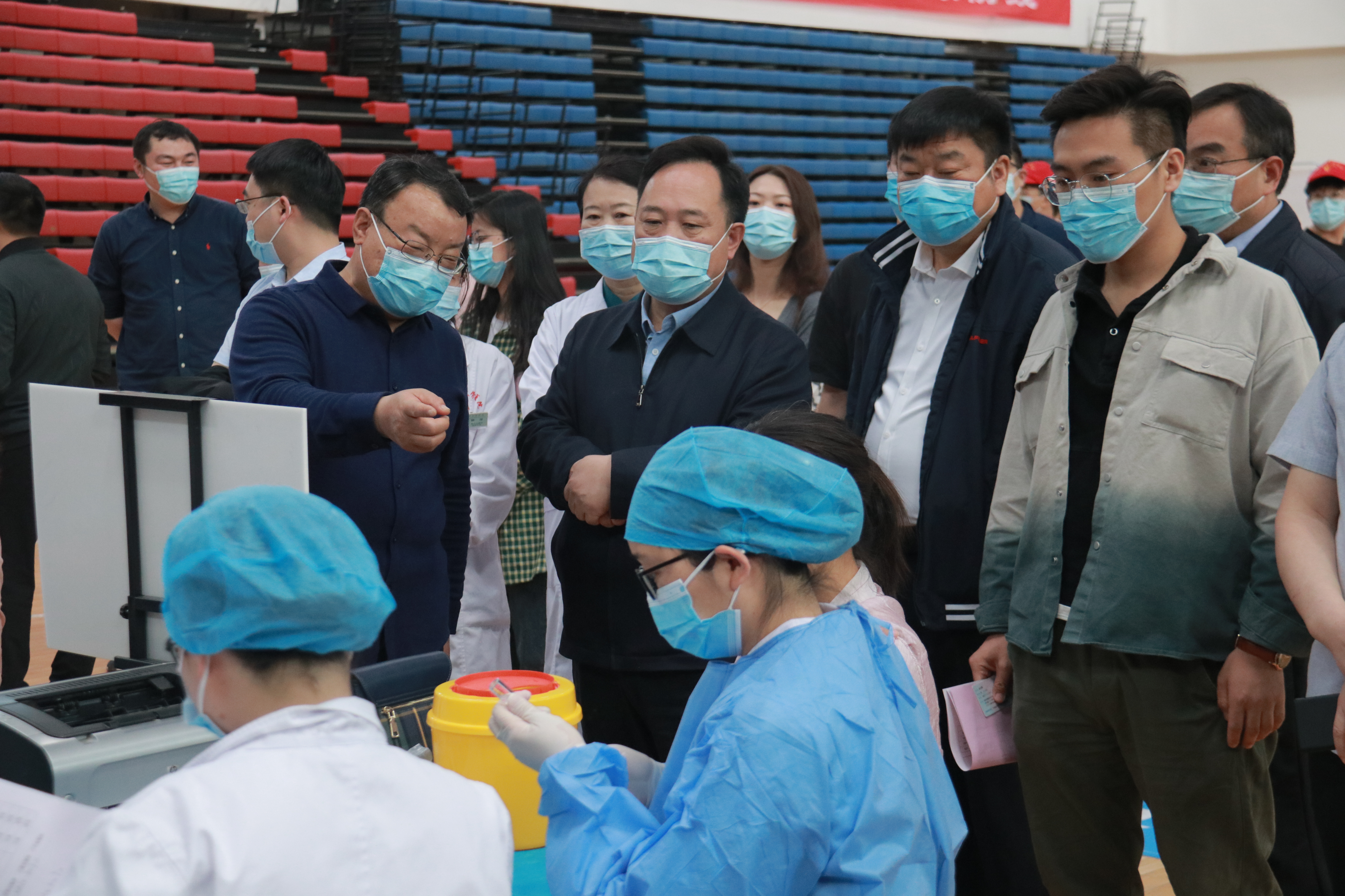 5月7日,bat365在线中国官网登录入口启动新冠病毒疫苗接种工作。校党委副书记谷振清到现场对学校师生疫苗接种工作进行检查指导,学校疫情防控工作领导小组办公室相关负责同志参加检查。