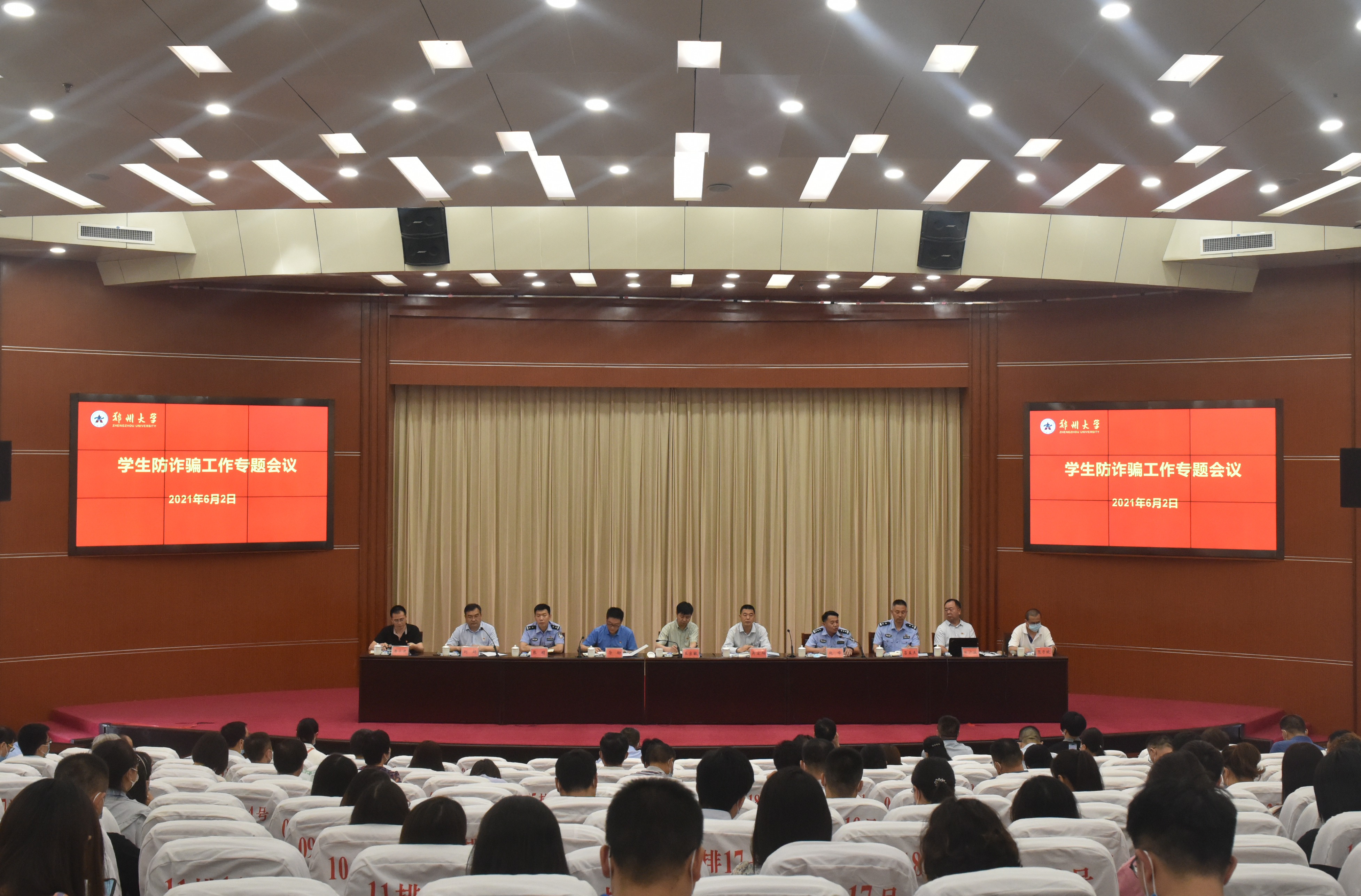 为深入贯彻习近平总书记关于严密防范网络犯罪特别是新型网络犯罪,维护人民群众利益和社会和谐稳定的重要指示精神,落实“学党史,办实事”,普及防范电信网络诈骗科学知识、法律知识,全面提高我校师生自我保护意识和安全防范能力,加强平安校园建设,6月2日下午,bat365在线中国官网登录入口在主校区综合管理中心第一报告厅召开严密防范电信网络诈骗暨学生安全工作动员部署会议。校党委副书记、副校长王宗敏,校党委副书记吴宏阳,郑州市公安局高新分局相关负责同志出席会议。校党委常委、宣传部部长厉励,党委学生工作部、学生处、党委研究生工作部、保卫处、信息化办公室等单位负责同志,各学院及各研究生培养单位分管本科生、研究生工作的党委副书记、副院长及全体专职辅导员参加会议。会议由党委学生工作部、学生处负责同志主持。