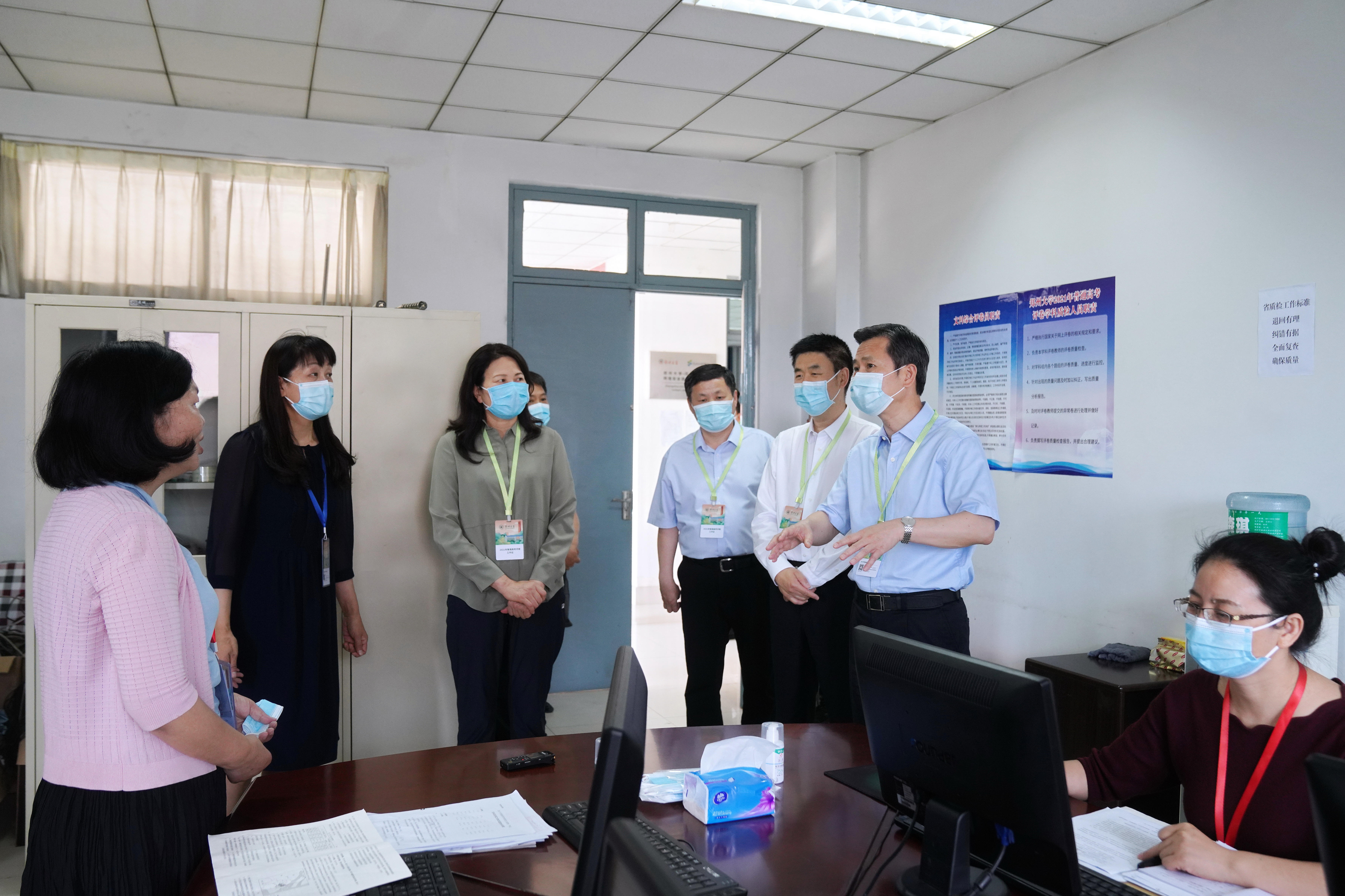 会前,江凌、霍金花到bat365在线中国官网登录入口2021年普通高校招生考试评卷现场,检查指导评卷工作。