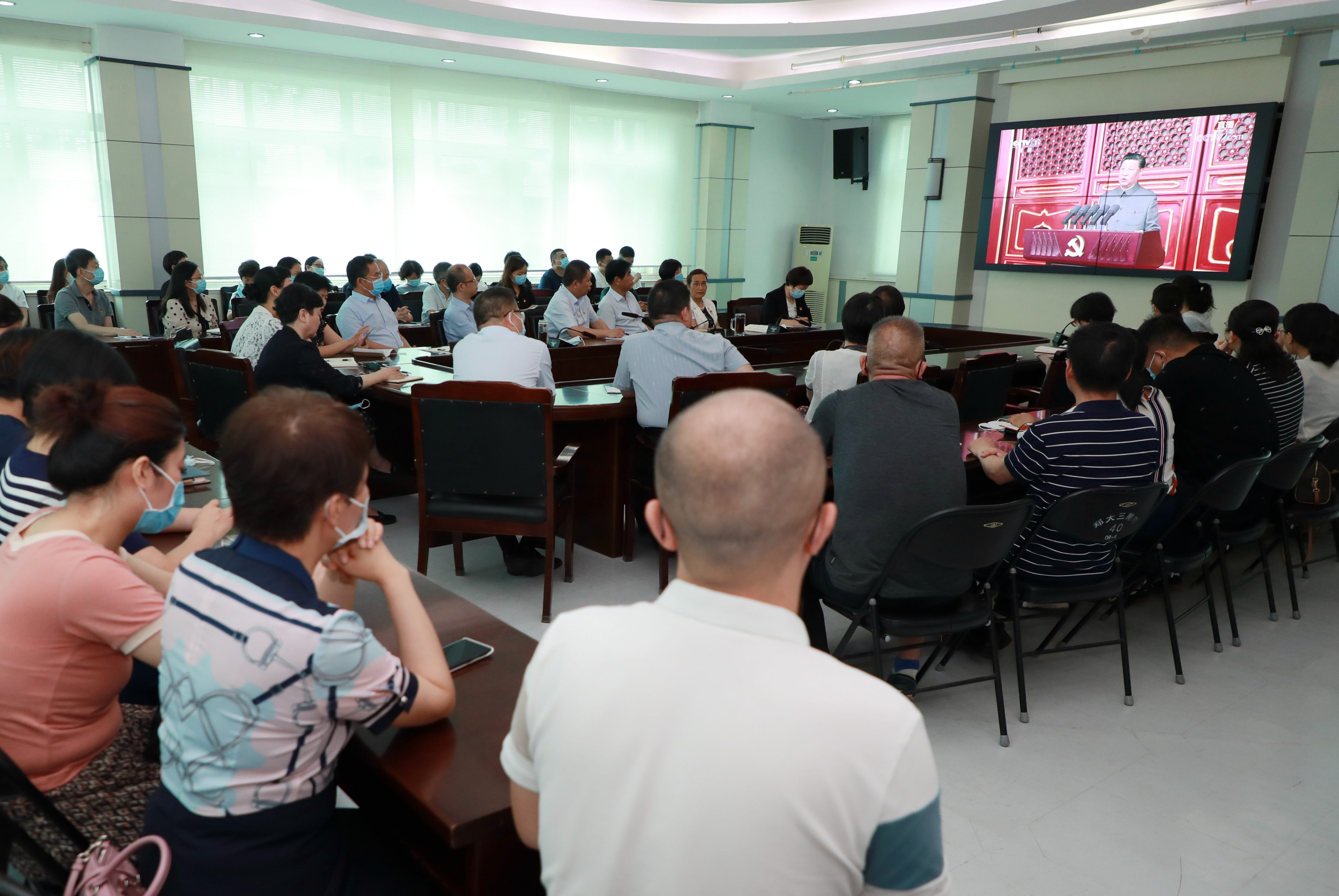 全体在校校领导、机关干部职工代表集中观看大会直播