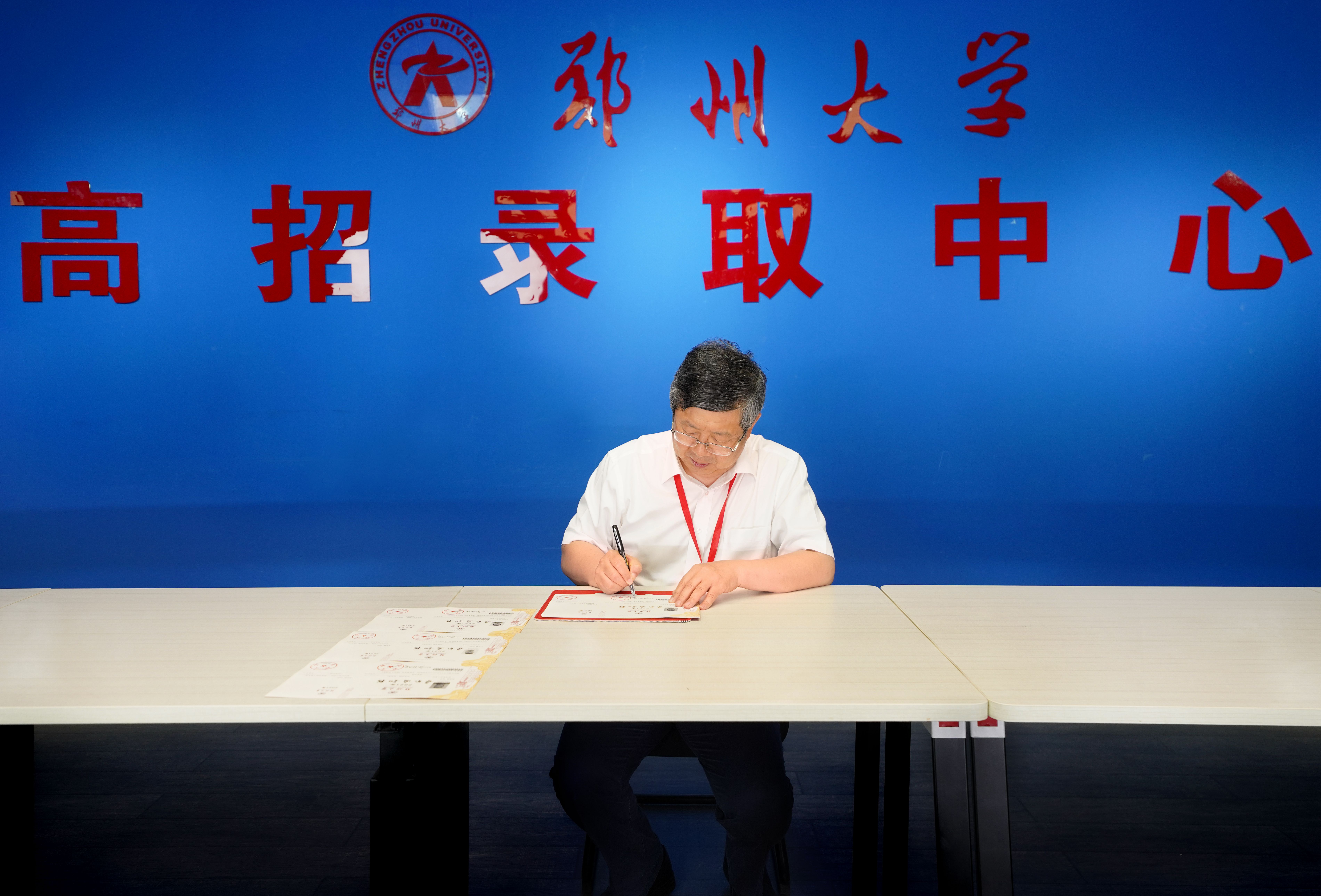 bat365在线中国官网登录入口首批签发的700份本科录取通知书涵盖了13个省市的16个批次,既有艺术、体育类新生,也有依据台湾学测考试、联招考试录取的港澳台侨新生。录取通知书以红,白,金三色为主。彰显了bat365在线中国官网登录入口的深厚底蕴,展示了全体郑大人不断开拓创新的决心。中国书法家协会名誉主席、书法学院院长张海先生亲笔提写的“录取通知书”,使得这份录取通知书更加有纪念意义和收藏价值。通知书背面以打造具有“bat365在线中国官网登录入口特色文化”为设计出发点,将bat365在线中国官网登录入口代表性建筑和中原文化相融合,构成一幅具有中国传统特色的图案。