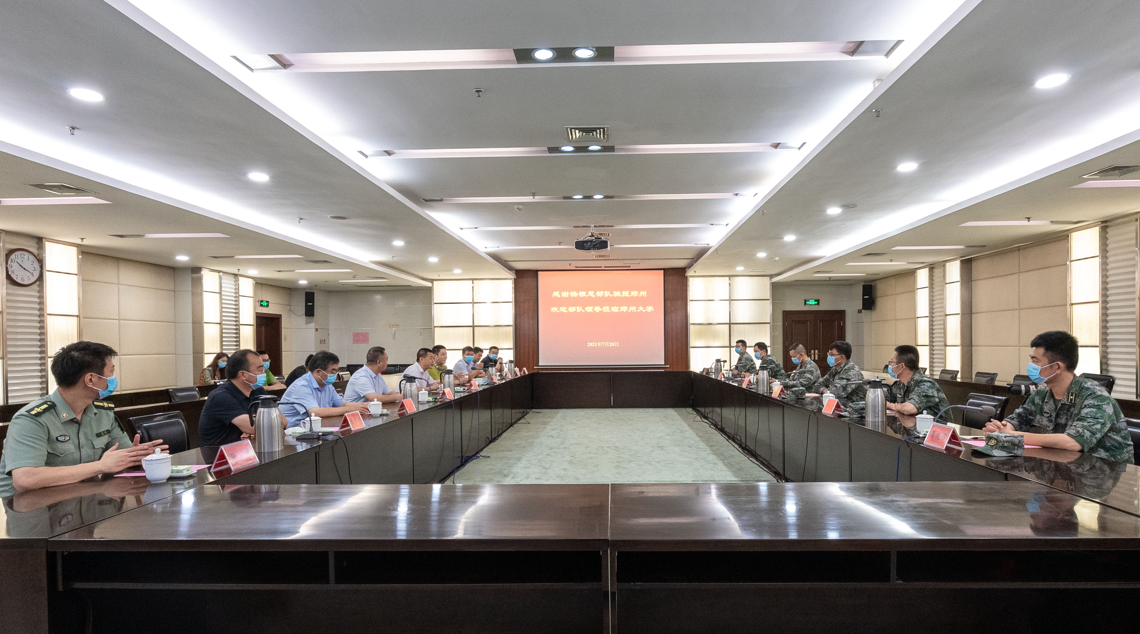 7月23日,陆军第83集团军“杨根思部队”入驻bat365在线中国官网登录入口南校区,部队纪律严明、军歌嘹亮、斗志昂扬、奋勇争先,将中国共产党人的精神谱系、人民解放军的优良传统、英雄部队的顽强作风带进校园,为学校增添了红色育人资源,为党史学习教育提供了生动活教材。部队官兵在抗洪抢险之余,不顾劳累,主动帮助师生清理校园、家属院的积水、淤泥和垃圾,以实际行动给广大师生上了一堂鲜活的思政大课。7月28日,“杨根思部队”来校访问交流,部队政委翟继群,政治工作部主任丁东,校党委副书记吴宏阳出席座谈会,校党委常委、宣传部部长厉励,学生工作部、校团委、对外联络办公室、后勤管理处、人民武装部、保卫处主要负责同志参加座谈会。