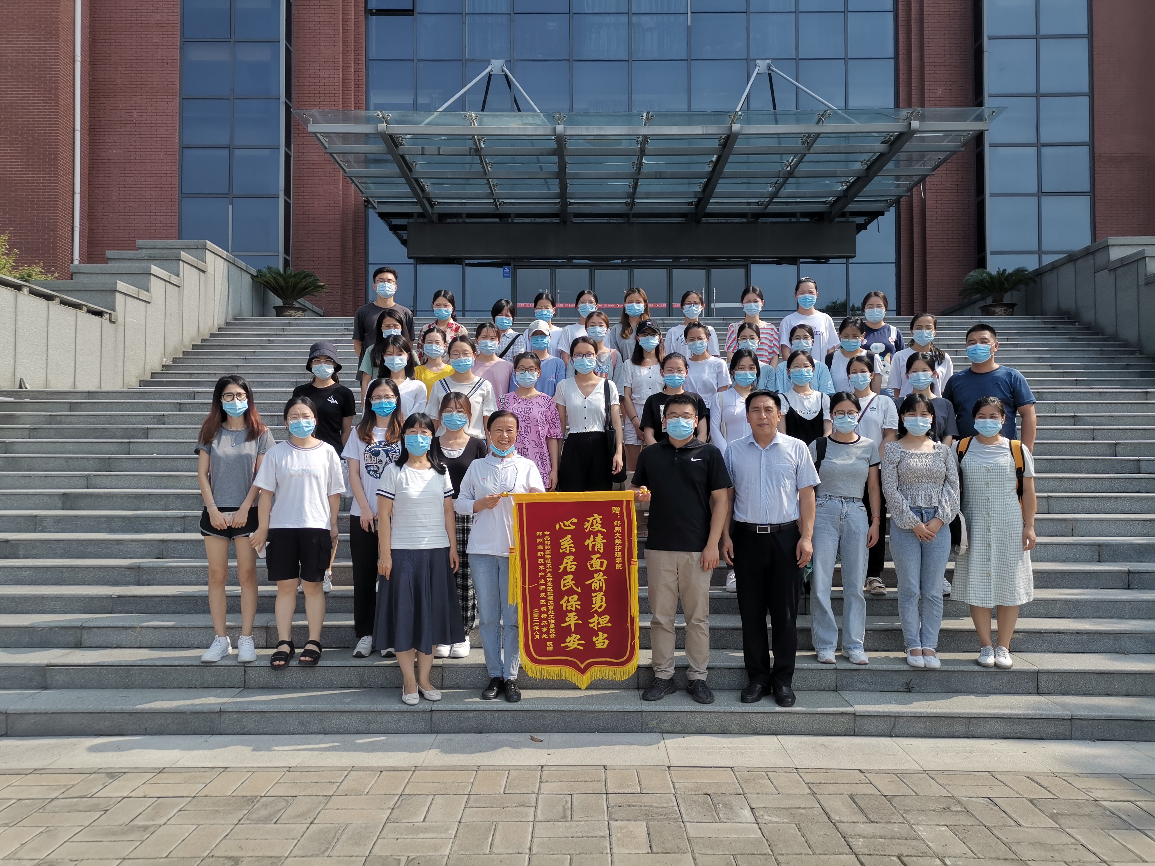 8月6日下午,同学们安全返校,高新区枫杨街道办为学院送来锦旗,对同学们的专业技能及工作态度表示充分的赞扬和感谢。同学们纷纷表示,作为郑大护理学子,国家和人民有需要,自己义无反顾,将同郑州人民一同携手,坚定坚决打好疫情防控阻击战。