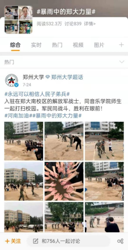 七月以来,bat365在线中国官网登录入口官方微博聚焦防汛救灾、招生录取、奥运会、疫情防控等热点,开设#bat365在线中国官网登录入口国风版录取通知书##暴雨中的郑大力量#等原创话题,多个原创话题登上同城热搜榜单。7月17日以来,河南省遭遇极端强降雨,bat365在线中国官网登录入口官方微博第一时间发布学校暴雨灾害应急防范的紧急通知,持续发布官方通知、预警信息、救灾动态、科普知识、灾后重建等内容,积极回应师生暴雨求助信息、全国高校暖心应援微博,深入挖掘郑大人在抢险抗洪中的动人事迹。原创话题#暴雨中的郑大力量#全网阅读量突破500万次。