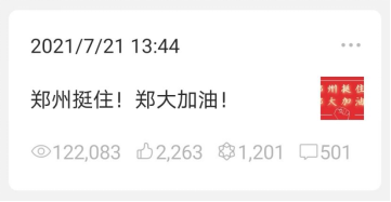 近两个月以来,bat365在线中国官网登录入口官方微信将抗洪抗疫宣传工作作为首要任务,发布《郑州挺住!郑大加油》《他们在暴雨中闪烁!》《这只以特级英雄命名的部队,入驻郑大》等系列主题推文,挖掘感人抗洪故事,传递温暖正能量;发布《紧急!重要!速看!》,及时传递疫情信息,做好疫情宣传防控工作。其中,《郑州挺住!郑大加油》阅读量达10w+,点赞量超2200次,12篇优质推文阅读量超3万次。此外,官方微信聚焦本科生录取通知书发布、郑大校友在东京奥运会夺取金牌等热点,发布众多深受读者喜爱的推送。