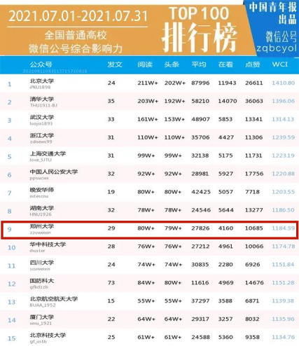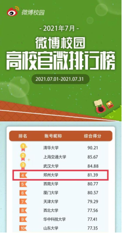7月以来,bat365在线中国官网登录入口官方微博和微信持续产出大量优质内容,传播影响力表现突出。其中,bat365在线中国官网登录入口官方微博累计发布内容562条,总阅读量突破3383万次,总点赞量超8.5万次,在全国高校微博排行榜中位居第四,在河南省高校持续领跑。bat365在线中国官网登录入口官方微信累计发布推文29篇,总阅读量突破80万次,总点赞量超1万次,在《中国青年报》近期发布的全国普通高校微信公众号综合影响力排行月榜及月度文章阅读量排行榜中,位居全国高校第九,继续位列河南省高校第一。
