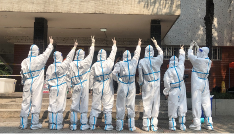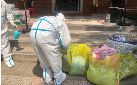 面对严峻的疫情形势,突击小组的成员们在30多度的高温下,穿着全套防护服为北校区体育馆内集中医学观察的同学运送生活物品,同时提醒每位同学带好口罩、勤洗手、多通风、保持良好的作息习惯。尽管防护服被汗水浸透,但他们一刻不停地工作至晚上11点,尽心尽力为同学服务,以舍我其谁的担当、强国有我的信念,书写郑大学子为学校贡献青春力量的时代华章。