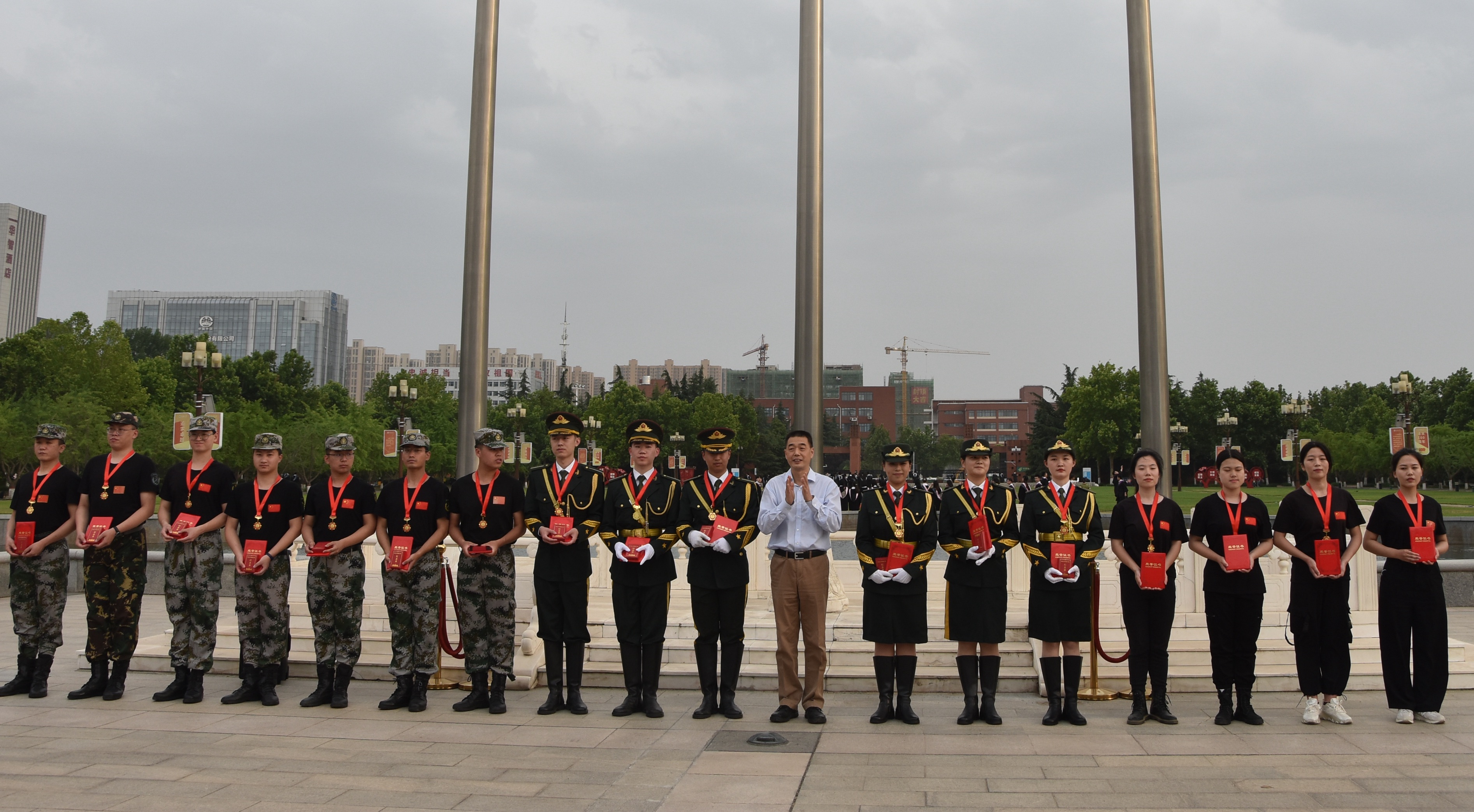 吴宏阳讲话。他高度肯定国旗护卫队组队十八年来取得的优异成绩,向2018级队员圆满完成学业,圆满完成护旗任务,即将迈向人生新征程表示祝贺。他指出,国旗护卫队是校园中的军营,是坚定理想信念、涵养家国情怀、锤炼顽强作风、增强报国本领的大熔炉、大学校。在防汛抗灾、疫情防控等紧要关头、关键时刻,国旗护卫队冲锋一线,迎难而上,发扬了人民军队的光荣传统,充分展现了“求是担当”的校训精神。他强调,队员们政治合格、学业优秀、素质过硬,既是“学霸”,也是模范,充分发挥了朋辈引领示范作用,在广大学生中树立了一面鲜明的旗帜,展现了当代大学生锐意进取、朝气蓬勃、爱党爱军爱国防的青春风貌。聚是一团火,散是满天星,他寄语队员们离校不离党,退队不褪色,在新起点、新领域、新岗位上继续发扬光大国旗护卫队精神,在“追求卓越”中当好郑大母校“形象大使”,在不懈奋斗中谱写青春华章,成为堪当民族复兴重任的时代新人。