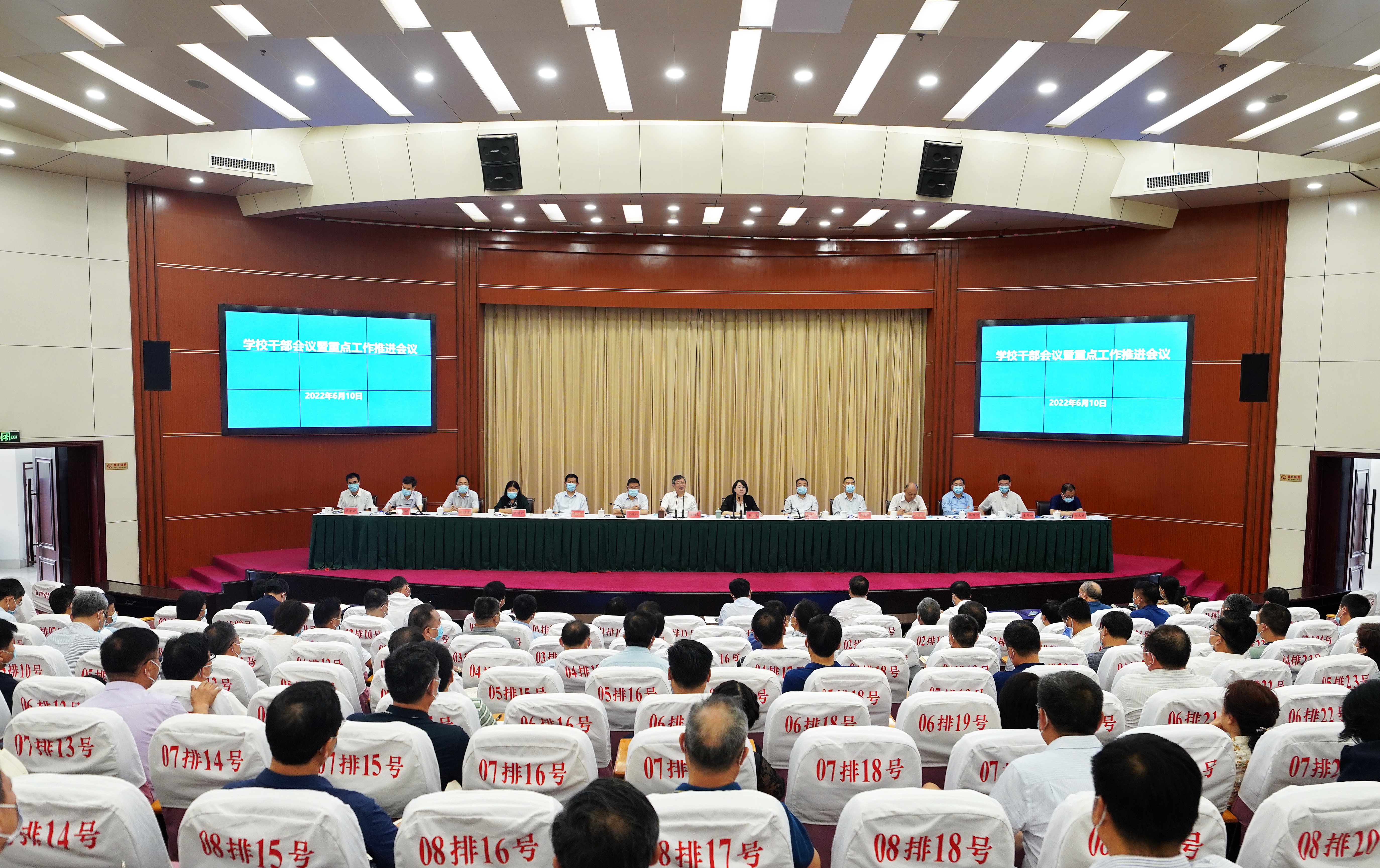 6月10日上午,bat365在线中国官网登录入口在主校区召开干部会议暨重点工作推进会议,传达学习省委书记楼阳生同志讲话精神,梳理学校重点工作推进情况,统一思想、加压奋进,为高标准推进全年重点工作、确保圆满完成全年目标任务进行再部署、再动员。省政协副主席、校党委书记刘炯天院士主持会议,校长李蓬院士等全体校领导出席会议,各部门、各单位党政主要负责同志参加会议。