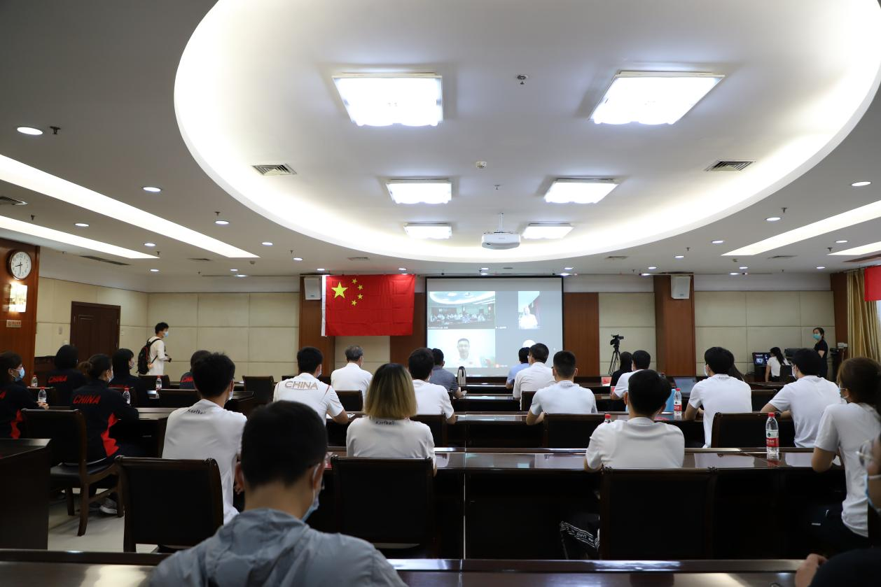 杨善德做动员讲话。他向所有队员表达问候,希望大家要进一步增强使命感和荣誉感,提高疫情防控意识,做好疫情防控工作,并做到兴奋剂问题“零出现”、兴奋剂违规“零容忍”。他表示,每一位参赛队员代表中国荷球队,代表着中国的大学生,代表着bat365在线中国官网登录入口的形象,要展现出顽强拼搏的精神,突破自我,取得佳绩。