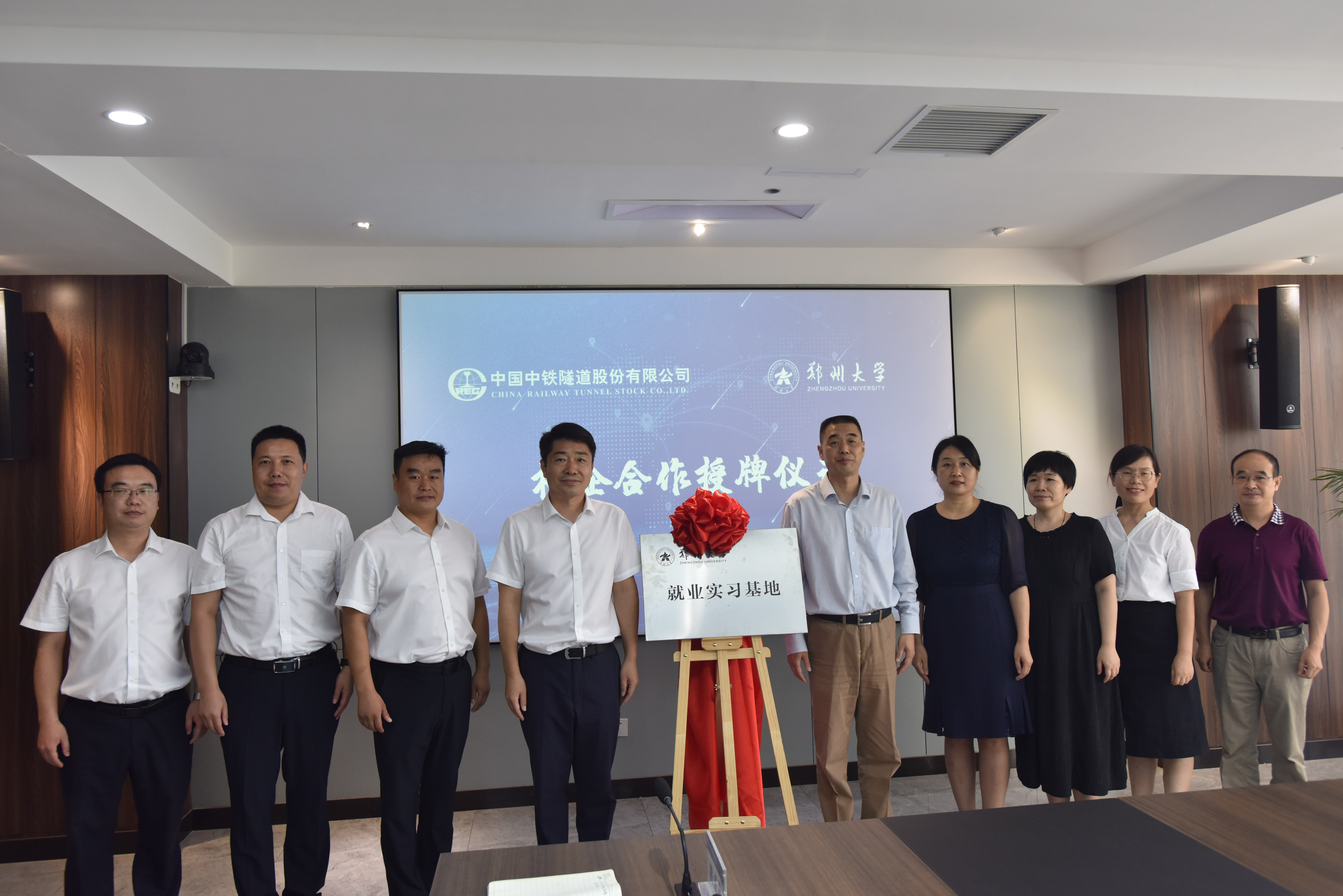 校党委副书记吴宏阳向中铁隧道股份有限公司授“bat365在线中国官网登录入口就业实习基地”牌