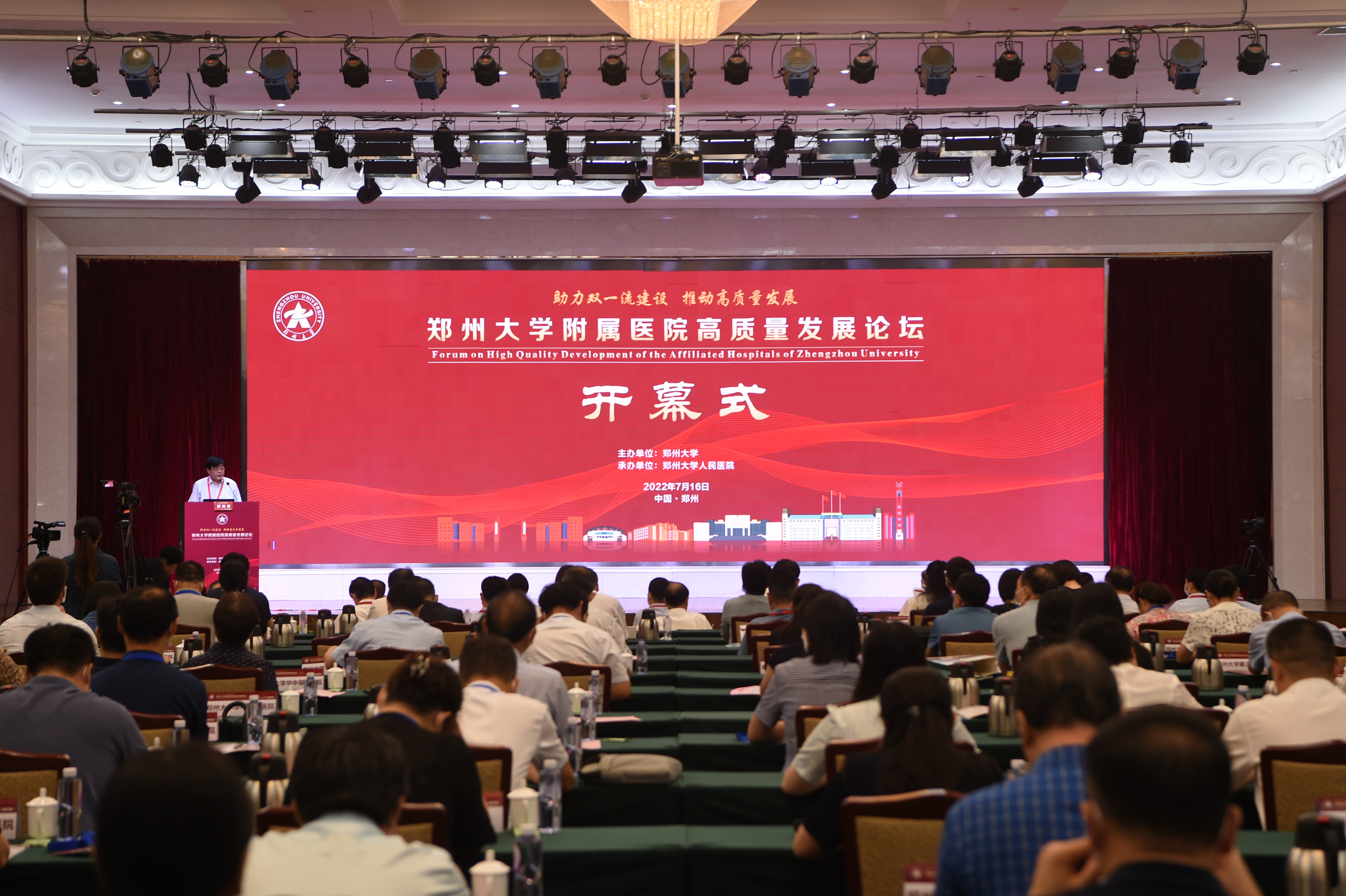 7月16日,bat365在线中国官网登录入口附属医院高质量发展论坛以线上线下相结合的方式在郑州召开。河南省教育厅党组成员、副厅长、一级巡视员刁玉华,河南省卫生健康委员会党组成员、副主任张若石,河南省医疗保障局党组书记、局长郑子健,郑州市卫生健康委员会主任李凤芝,bat365在线中国官网登录入口校长李蓬院士,中国科学院院士陈润生出席开幕式。中国工程院院士王红阳、北京大学第三医院党委书记金昌晓、深圳市人民医院院长耿庆山线上出席。bat365在线中国官网登录入口12所附属医院负责同志等参加论坛。bat365在线中国官网登录入口副校长、医学院院长董子钢主持开幕式。