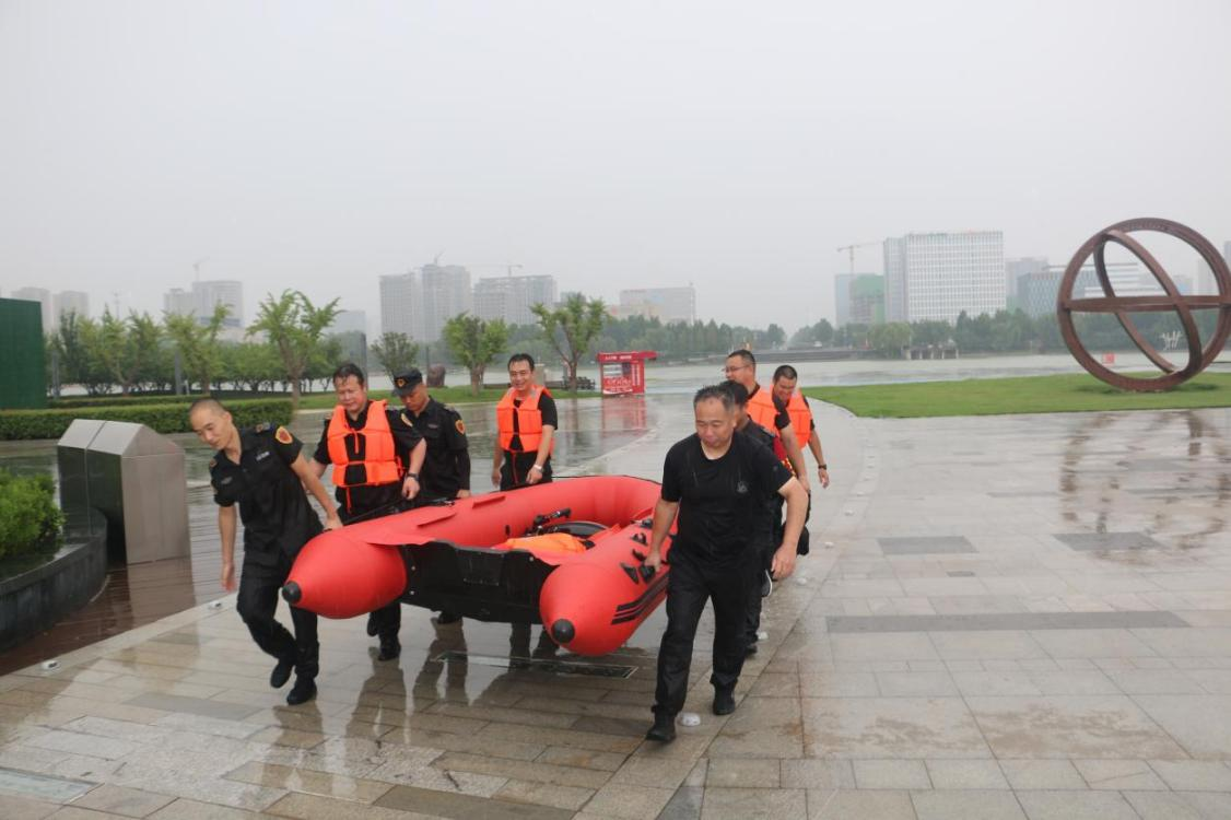 为切实提高防汛应急抢险救援能力,抓紧抓实抓细暑期防汛备汛各项工作,按照学校防汛工作领导小组工作安排和保卫处防汛工作动员部署会要求,7月15日,保卫处联合郑州市高新区消防救援大队、河南力盾保安公司,组织20余名校园应急救援骨干在天健湖开展防汛应急实战演练。