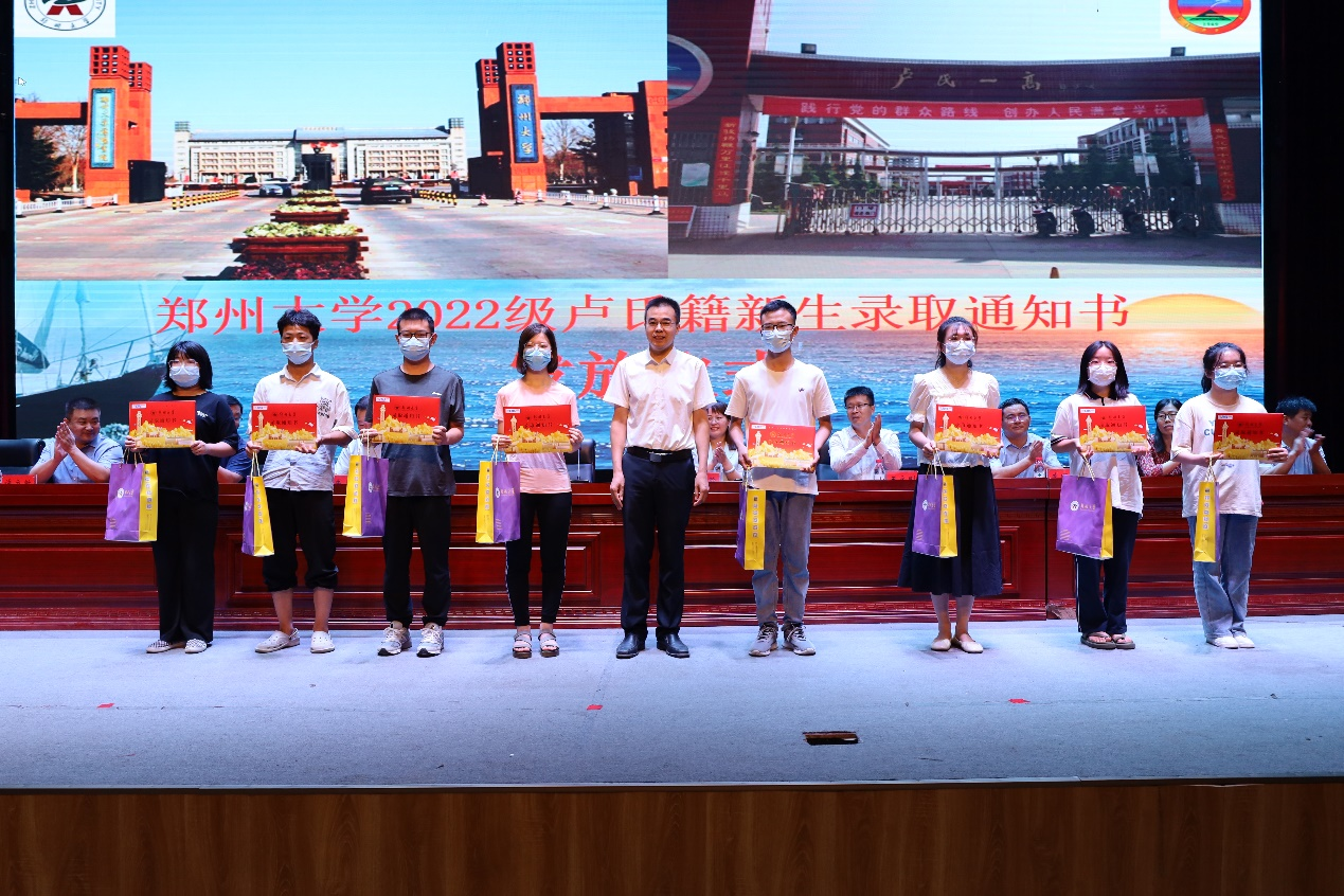 副校长单崇新为bat365在线中国官网登录入口2022级卢氏籍新生现场发放录取通知书