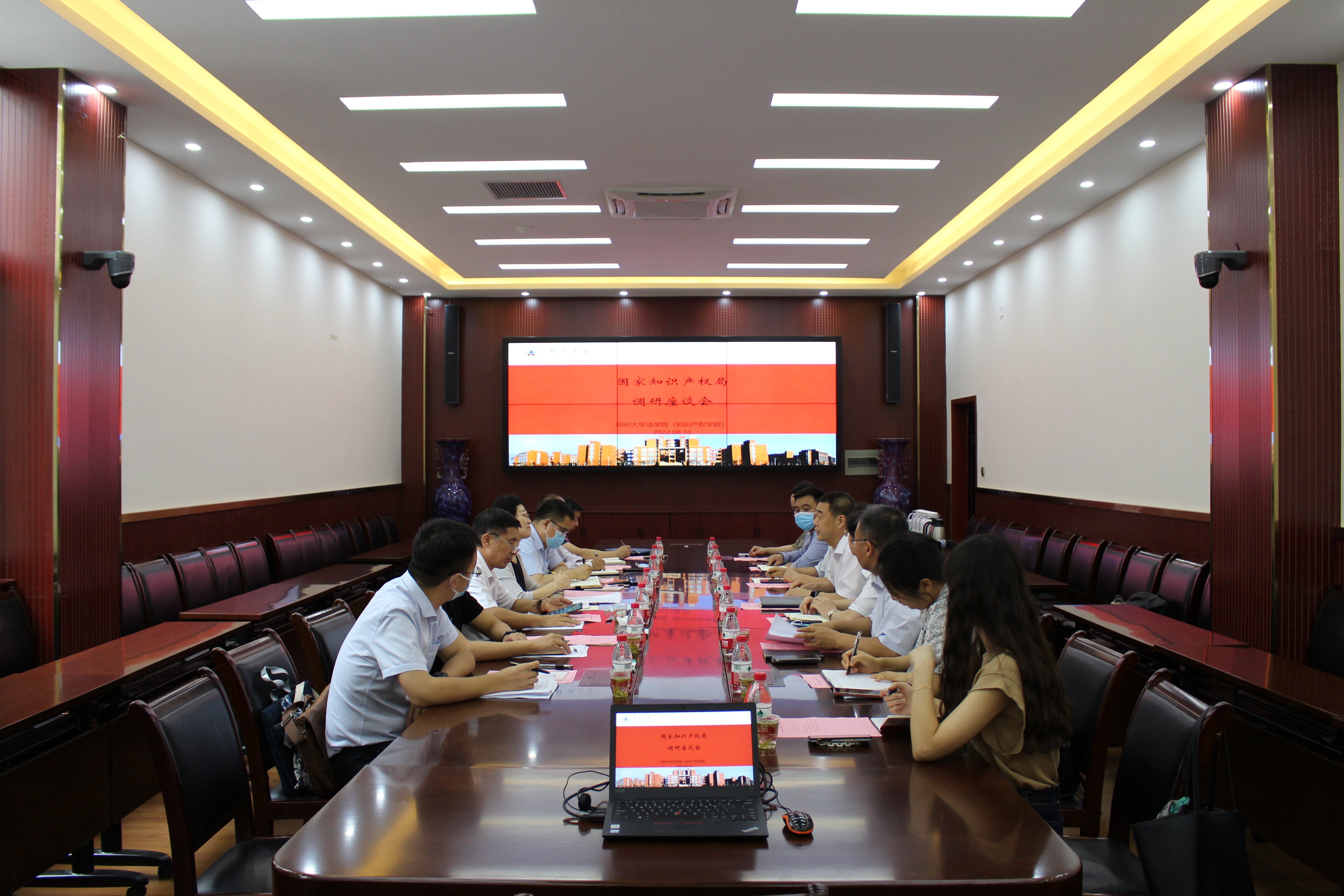 8月10日,国家知识产权局人事司一级巡视员曹红英、河南省知识产权局副局长闻相俊一行来校调研指导工作。校党委副书记吴宏阳出席座谈会并致辞,法学院、知识产权学院党政负责同志、师生代表参加了座谈。会议由闻相俊主持。