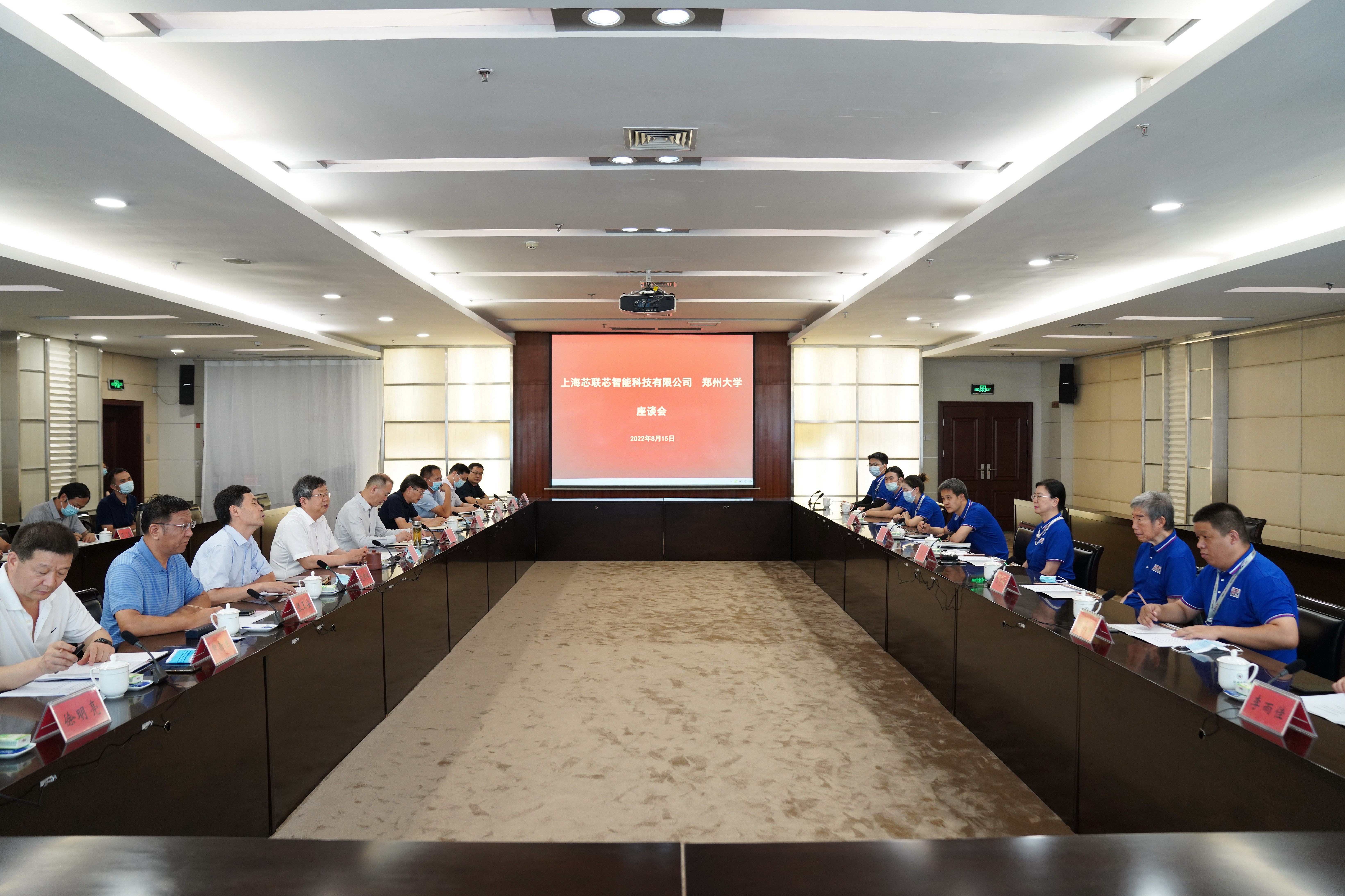 8月15日下午,bat365在线中国官网登录入口与上海芯联芯智能科技有限公司召开校企合作座谈会。上海芯联芯智能科技有限公司创始人石克强、董事长兼总经理何薇玲、市场开发及销售总监王炳立、郑州研发中心总经理苏运强以及员工代表,郑州市高新区党工委副书记、管委会主任张红军、高新区开放创新工作领导小组副组长兼办公室主任郑彦松、高新区投资促进中心副主任王帅、高新区投资促进中心海外事业部部长肖亮,河南省政协副主席、校党委书记刘炯天,副校长赵明皞出席会议,双方相关职能单位负责同志参加座谈会。座谈会由副校长赵明皞主持。