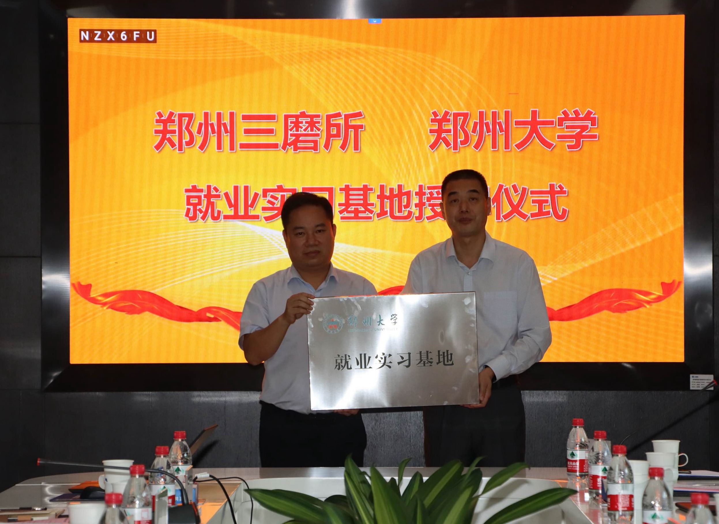 吴宏阳向郑州磨料磨具磨削研究所有限公司授“bat365在线中国官网登录入口大学生就业实习基地”牌。