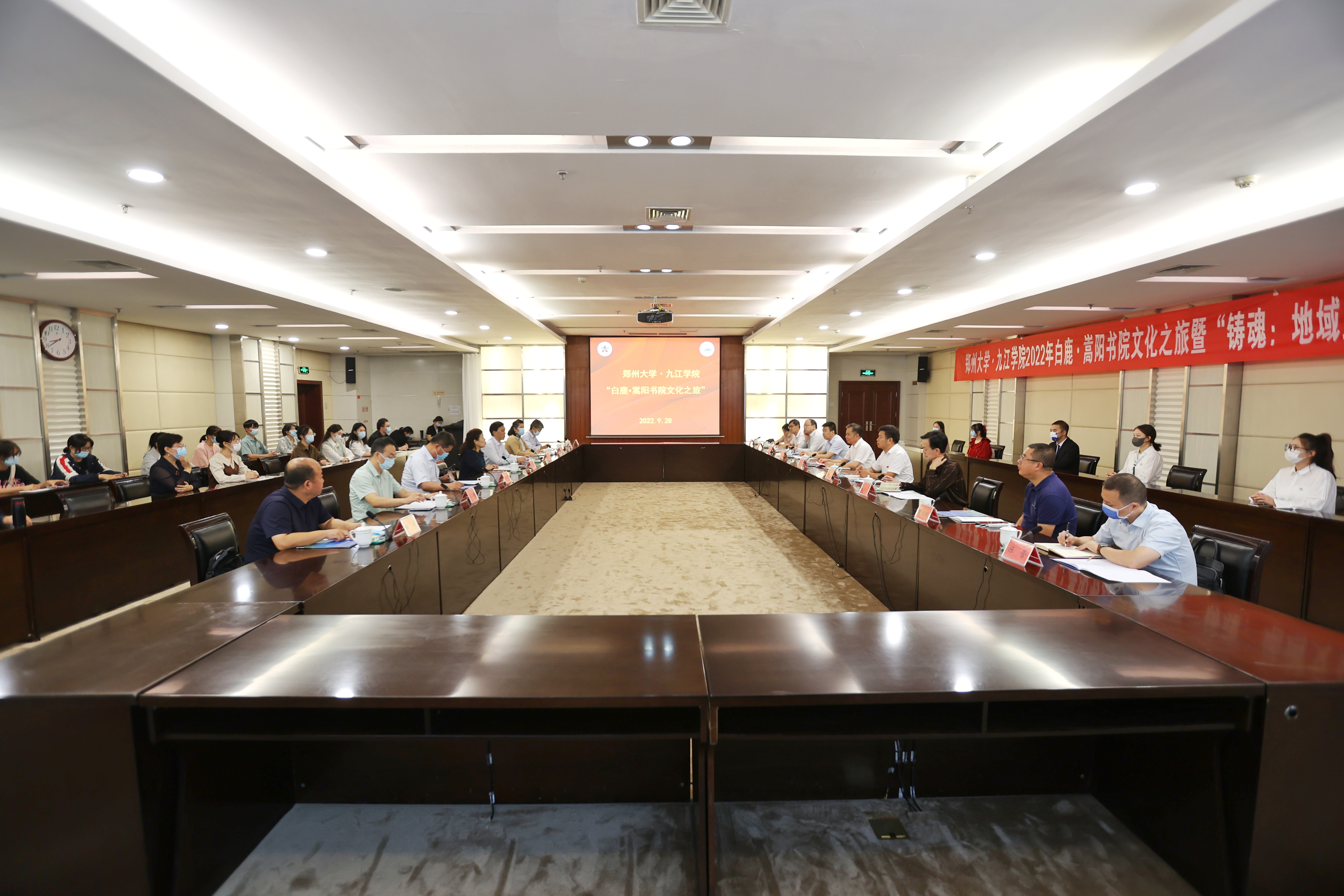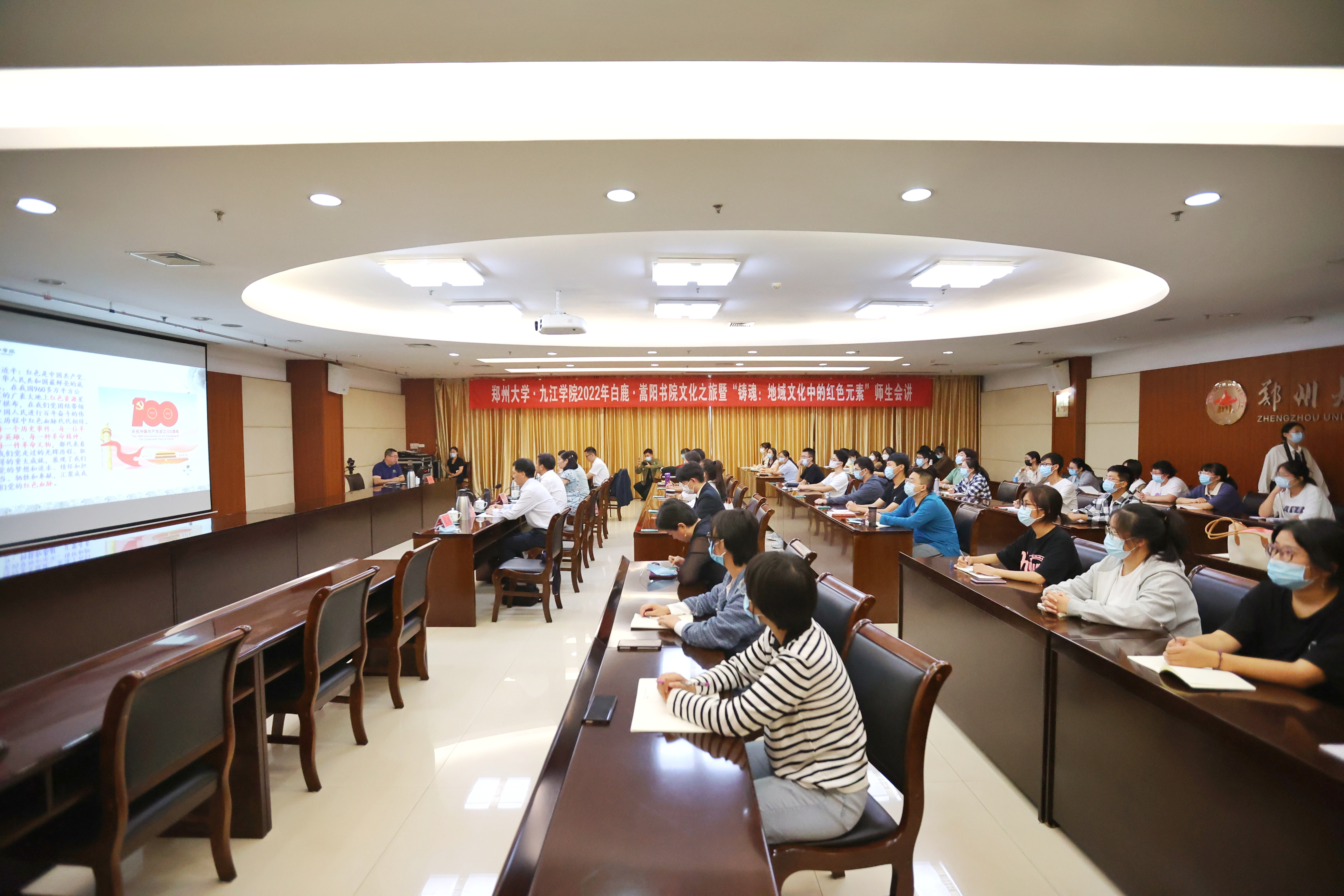 近日,由bat365在线中国官网登录入口与九江学院联合举办的2022年“白鹿·嵩阳书院文化之旅”暨“铸魂:地域文化中的红色元素”师生会讲主题活动在bat365在线中国官网登录入口主校区举行。九江学院党委书记赵伟、副校长陈春生,bat365在线中国官网登录入口校长李蓬院士,副校长张倩红,校党委常委、纪委书记(监察专员)许东升分别出席了相关活动。bat365在线中国官网登录入口、九江学院有关单位负责同志及师生代表参加了活动。