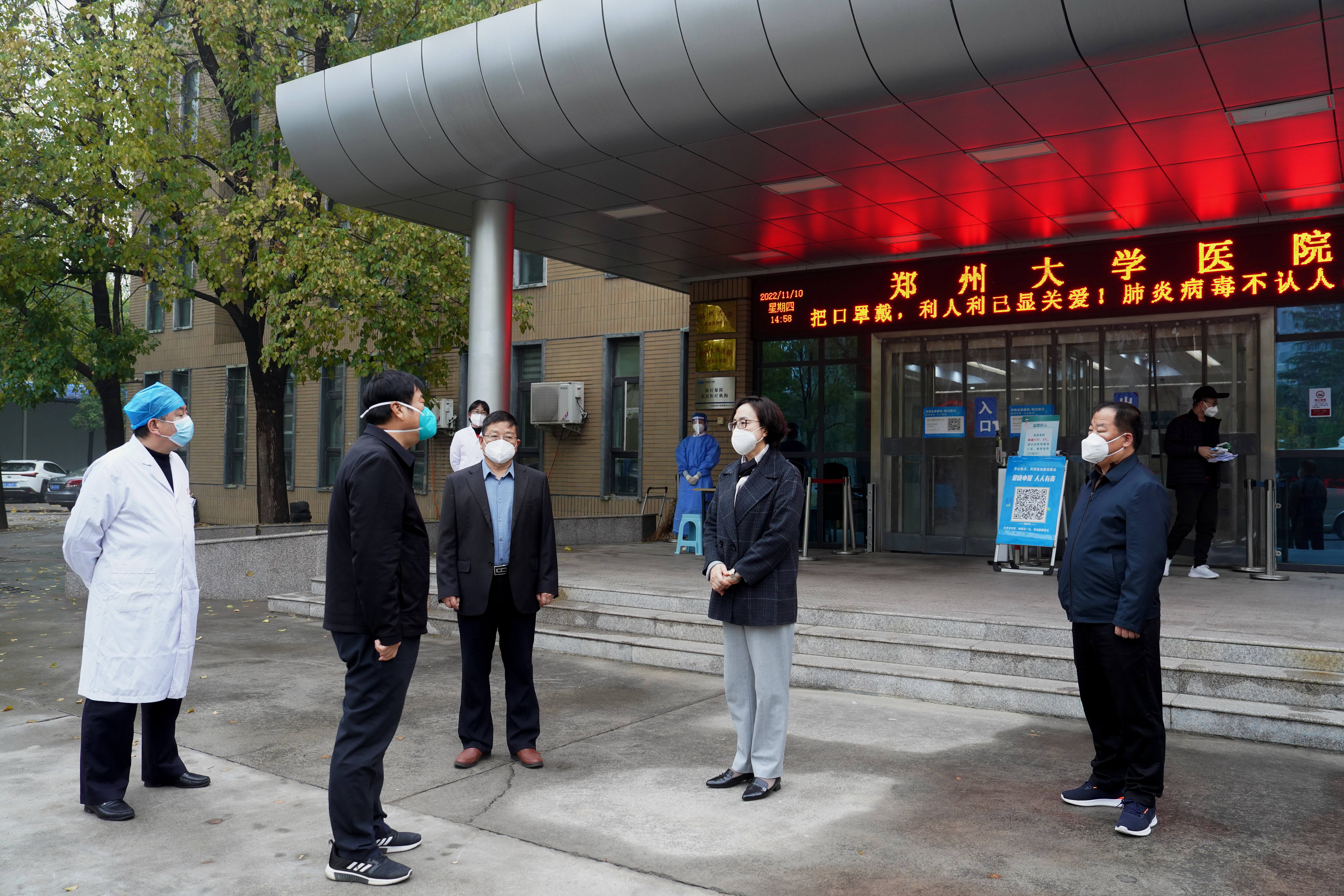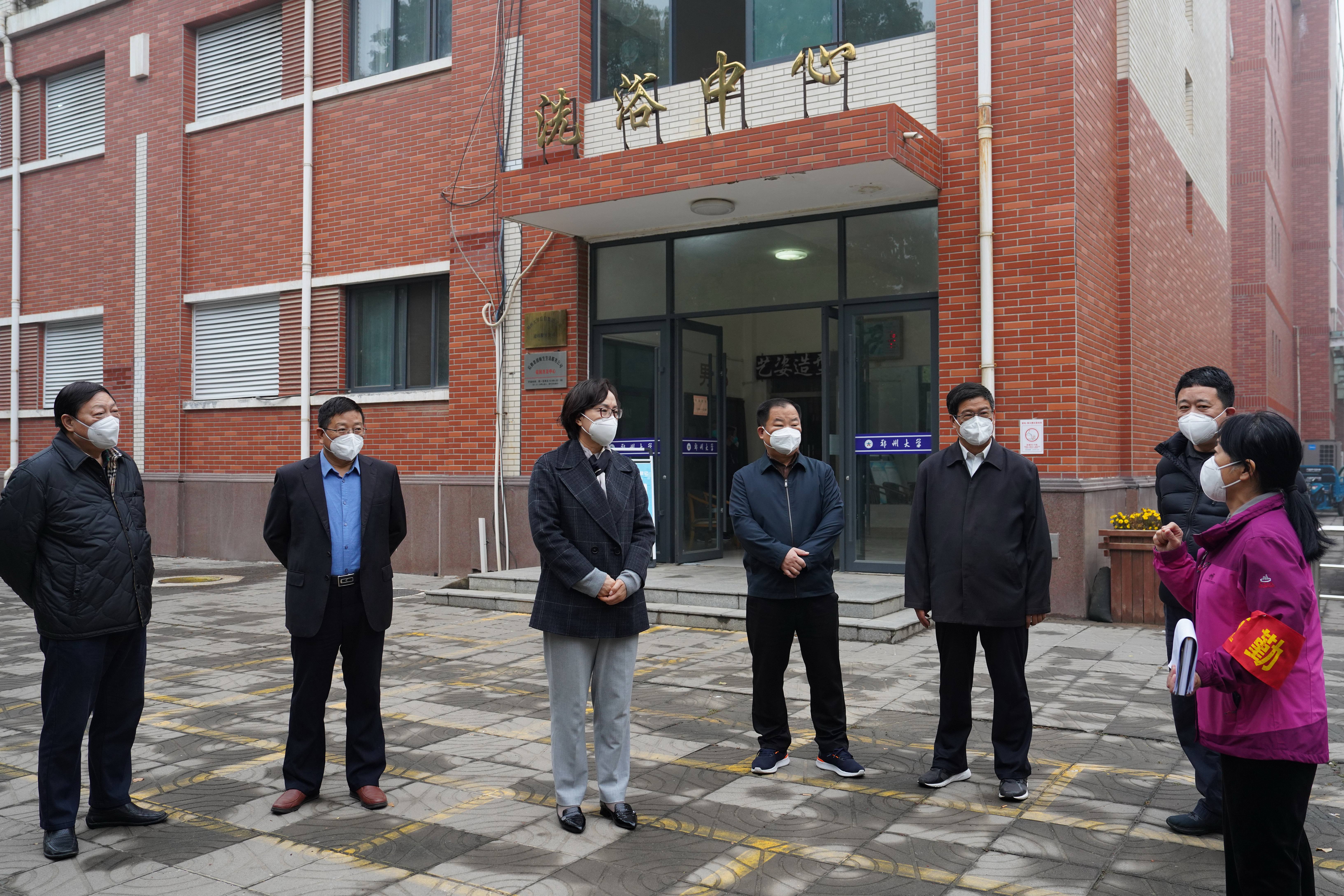 李蓬一行首先到四个社区查看社区运行情况。在柳园社区,李蓬一行查看了柳园8号楼、9号楼学生宿舍以及社区办公场所,听取社区负责同志关于社区运行情况的汇报,详细询问楼长、楼层长工作与生活情况,并代表学校对社区全体工作人员表示慰问与感谢。她指出,柳园社区是全校入住学生规模最大的社区,社区全体工作人员要顶住压力、克服困难,在做好社区各项工作的同时,也要强化自我防护,保持身体健康。