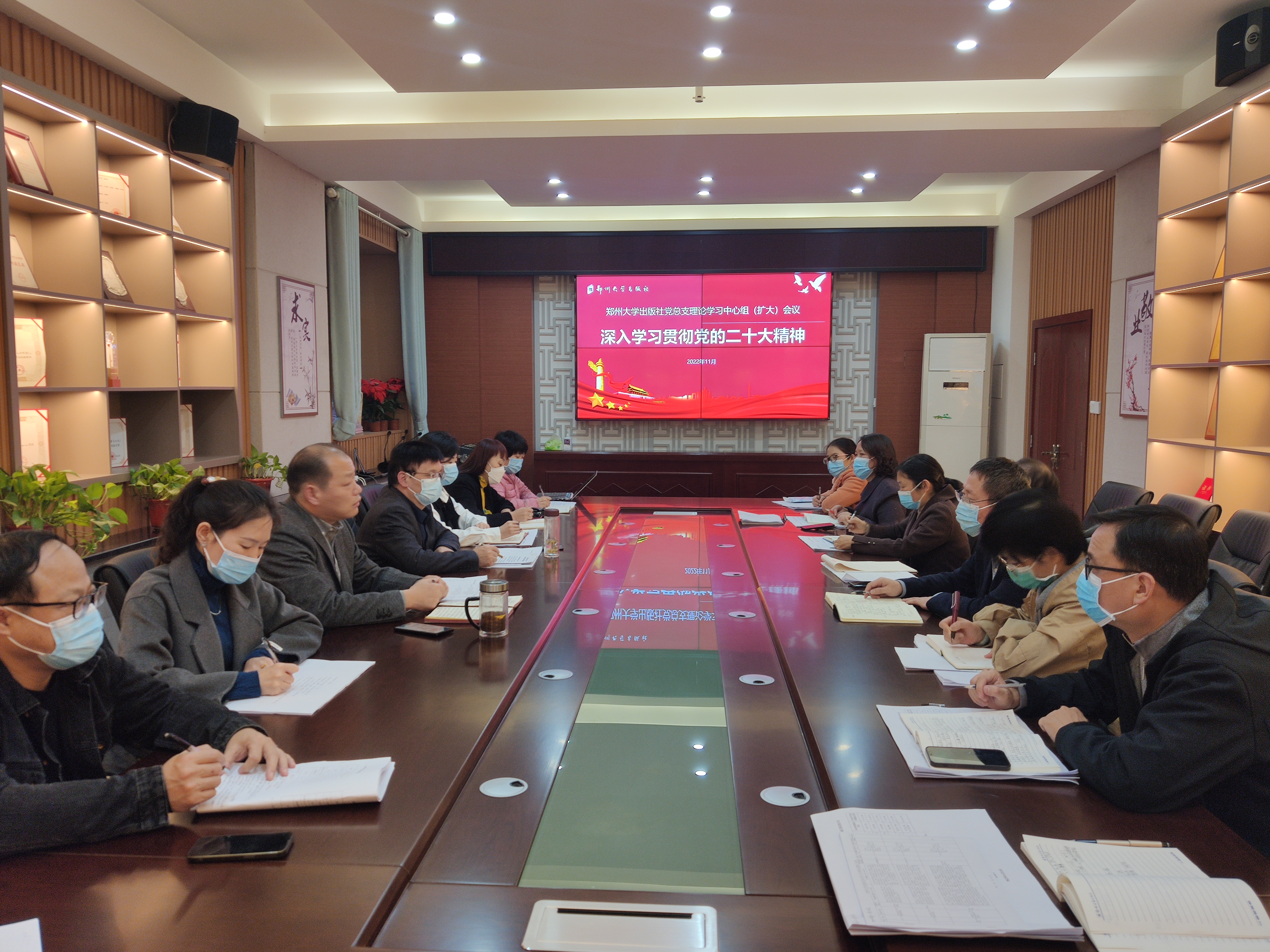 11月14日,bat365在线中国官网登录入口出版社召开党总支理论学习中心组(扩大)会议,深入学习贯彻党的二十大精神。出版社党总支委员,各党支部书记、各部门负责人参加会议。