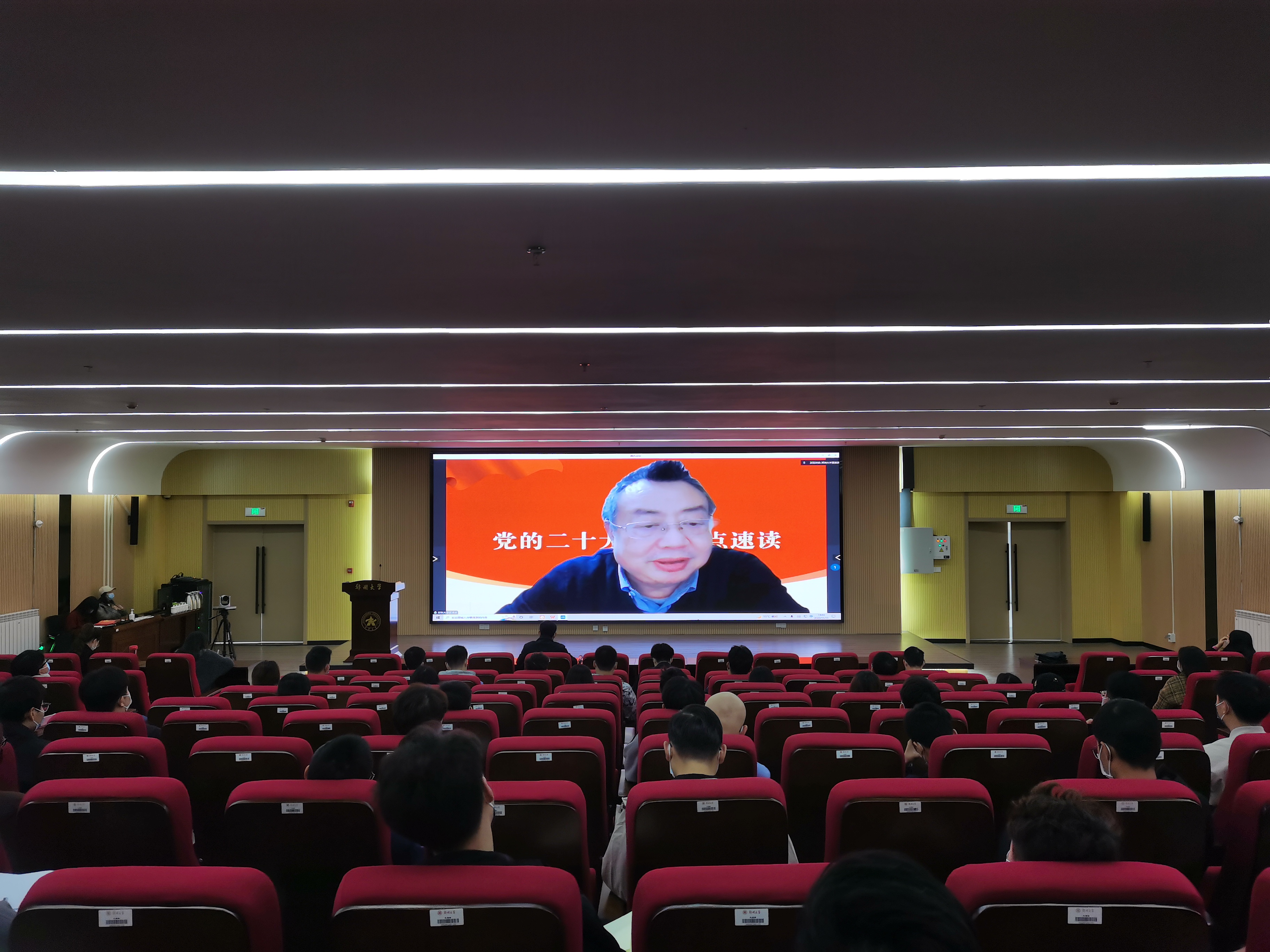 屈凌波以《深刻学习领会二十大新党章 做新时代的先锋战士》为主题进行了专题授课,通过解读党的二十大报告要点,阐释新修订的《中国共产党章程》,帮助全体党员干部师生、入党积极分子、发展对象进一步深化对党的二十大报告的认识,进一步增进对党的路线方针政策以及党的基本知识的了解,进一步加深对习近平新时代中国特色社会主义思想、马克思主义中国化时代化、中国式现代化等重大理论和实践问题的理解。他指出,党章是党的根本大法,修改党章事关战略全局,事关人民福祉,事关复兴伟业。新时代青年必须深刻认识到修改党章的重要意义,必须认真读原文、悟原理,全面把握党章修改的重要内容,加深对党的认识,自觉领悟党的二十大提出的新思想新论断、新部署新要求,切实把思想和行动统一起来,提升党性觉悟和政治境界。他希望青年学子要按照党章的要求,做新时代的先锋战士,在新的征程中,在建设中国式现代化的过程中,在实现伟大民族复兴的过程中建功立业,贡献青春力量,不辜负共产党员的光荣身份,不辜负我们所处 的伟大时代。