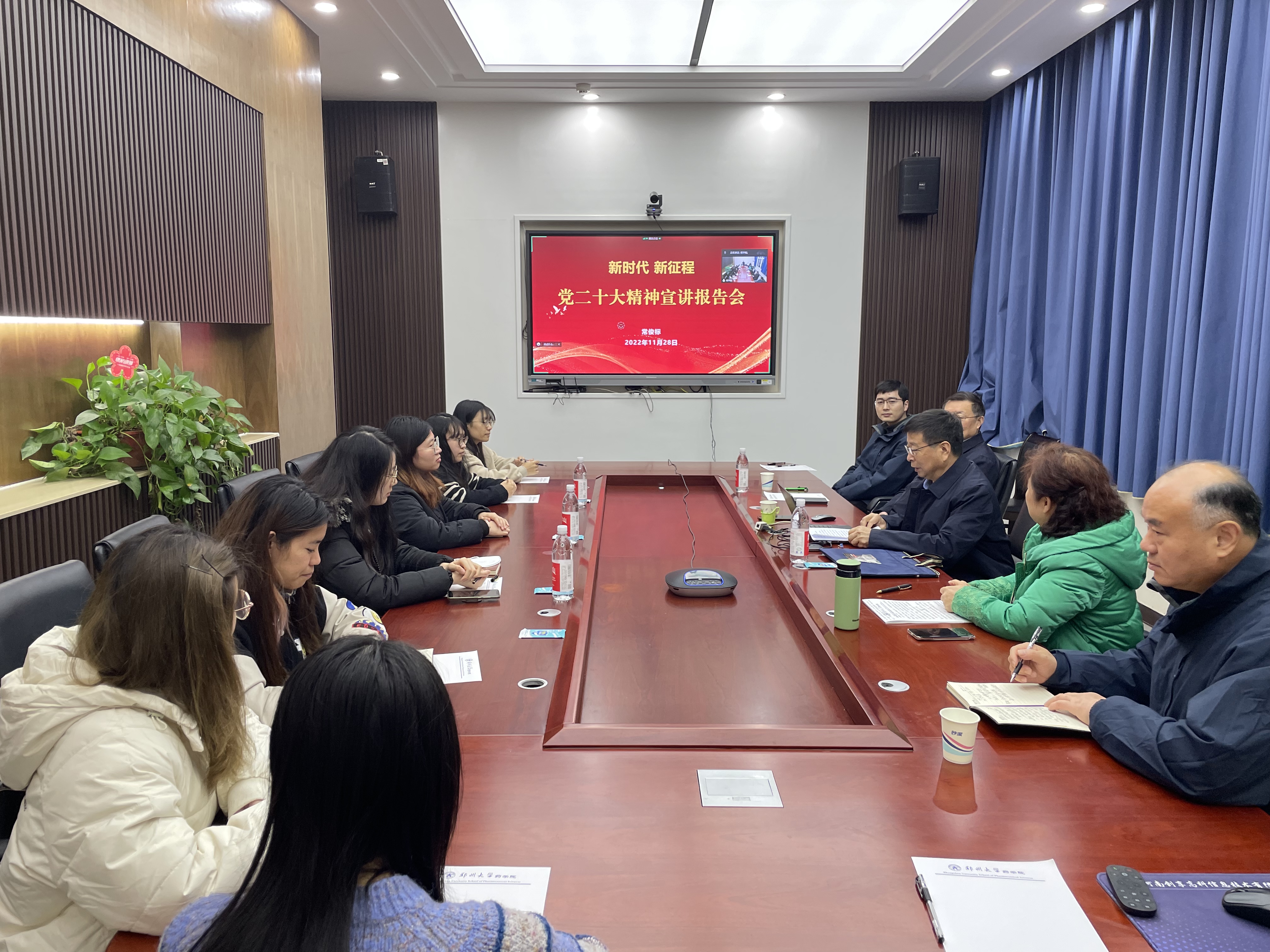 为深入学习宣传贯彻党的二十大精神,推动党的二十大精神进一步入脑入心,不断提升广大师生政治理论水平,11月28日,校党委副书记、副校长常俊标,为药学院师生做党的二十大精神宣讲报告。报告以线上线下结合形式进行,药学院全体教工及部分学生代表参加活动。报告会由药学院负责同志主持。