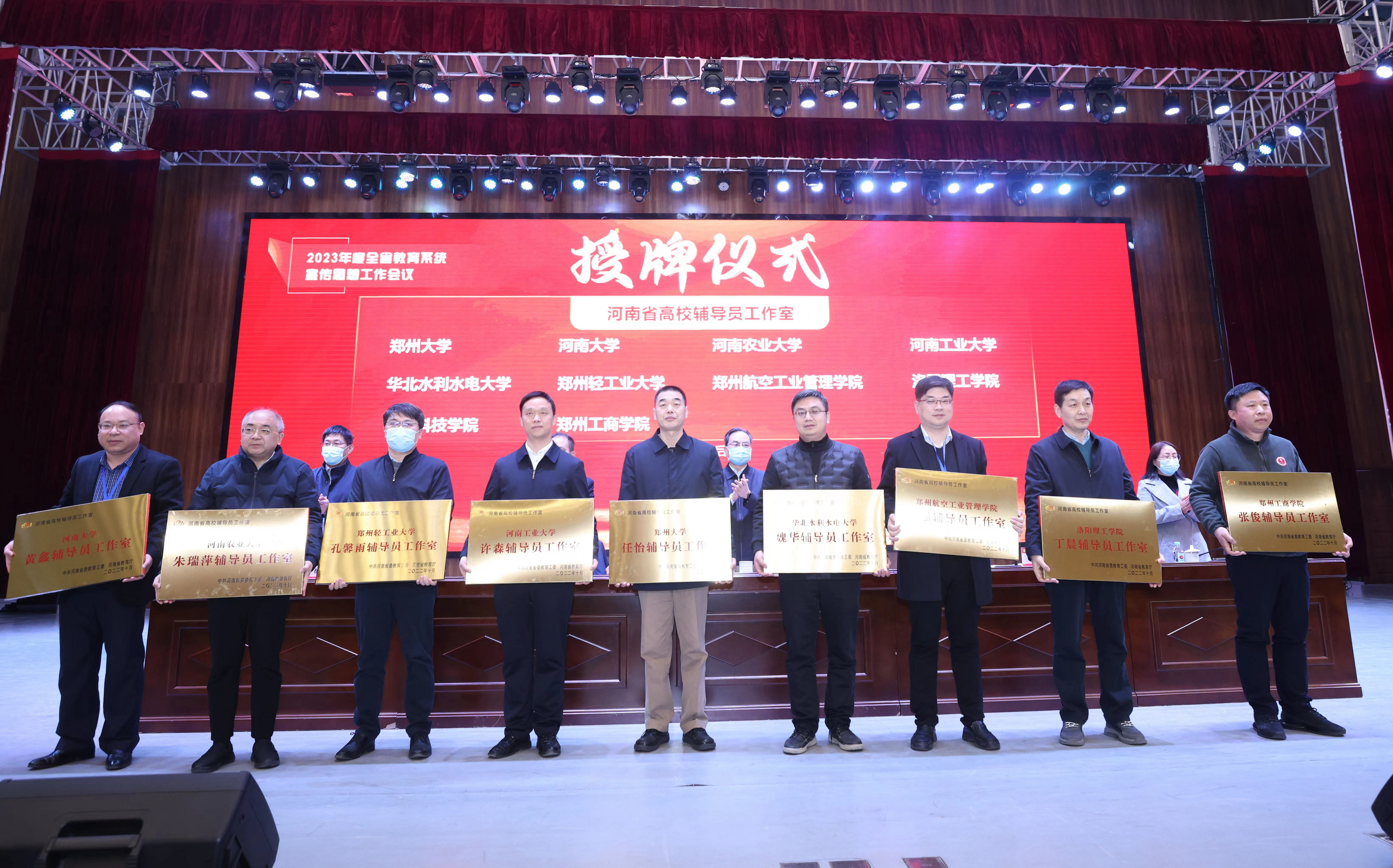 随后,吴宏阳代表bat365在线中国官网登录入口领受“河南省高校思政课名师工作室”“河南省高校网络教育名师工作室”“河南省高校心理健康教育名师工作室”“河南省高校辅导员工作室”等4个工作室牌匾。