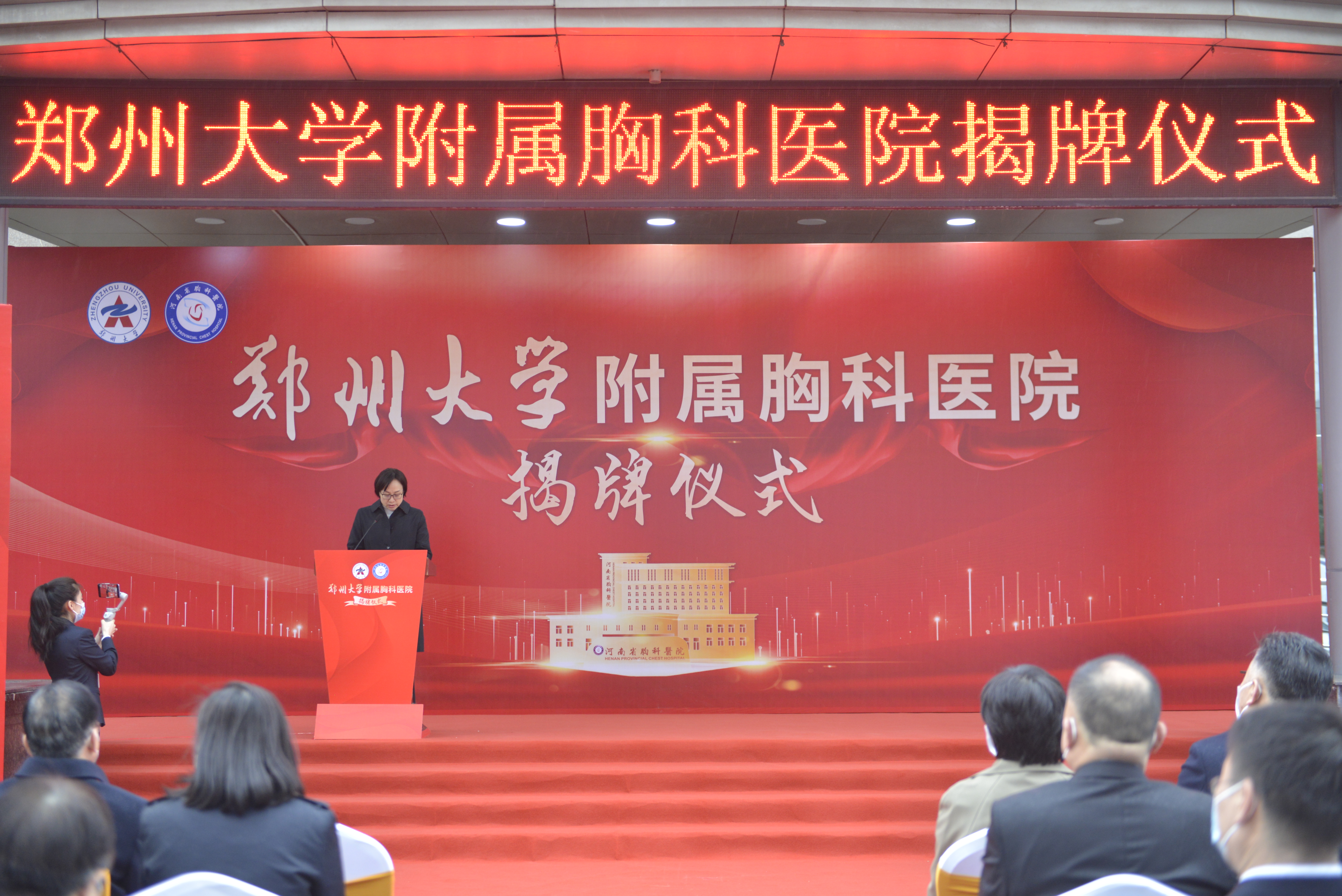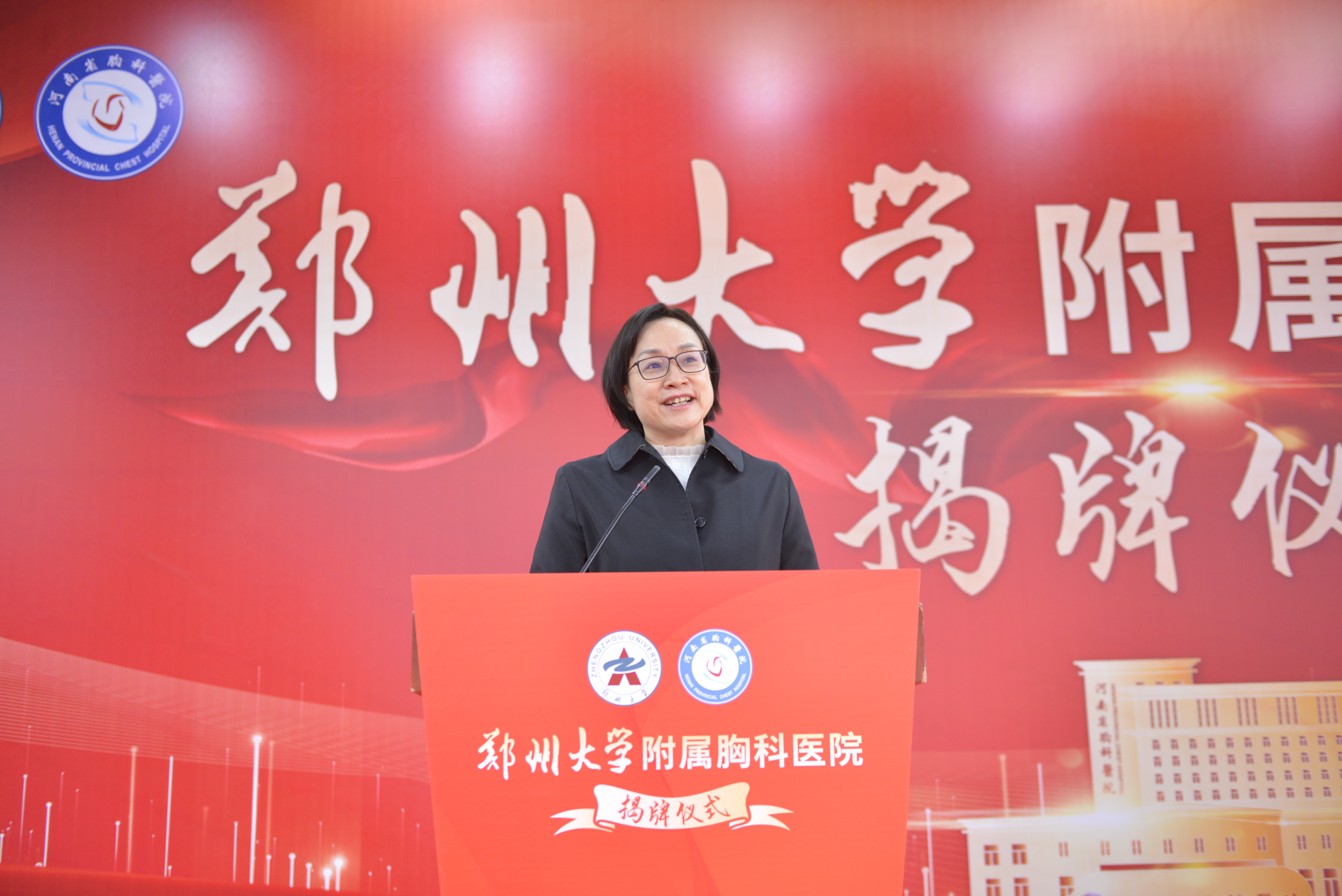 李蓬讲话。她表示,bat365在线中国官网登录入口将胸科医院作为附属医院,是学校服务国家战略、服务现代化河南建设的具体举措,是深化拓展学校一流大学社会服务能力的重要实践。她对附属胸科医院提出三点期望:一是不断加强内涵建设,对标国家一流胸科医院,进一步提升疑难危重症诊疗能力,为河南省乃至中部地区广大人民群众提供更加优质的医疗服务;二是坚持医术和学术并重,明确学科定位,突出学科优势和特色,汇聚高层次人才,提高对学校一流大学和一流学科建设的介入度和贡献率;三是深化医教协同,提升临床教学能力和高层次临床医学人才培养能力,培养一批高水平医学拔尖创新型人才,努力建成高水平的研究型大学附属医院,为高质量建设现代化河南提供坚实的健康保障,为bat365在线中国官网登录入口一流大学建设提供有力支撑。